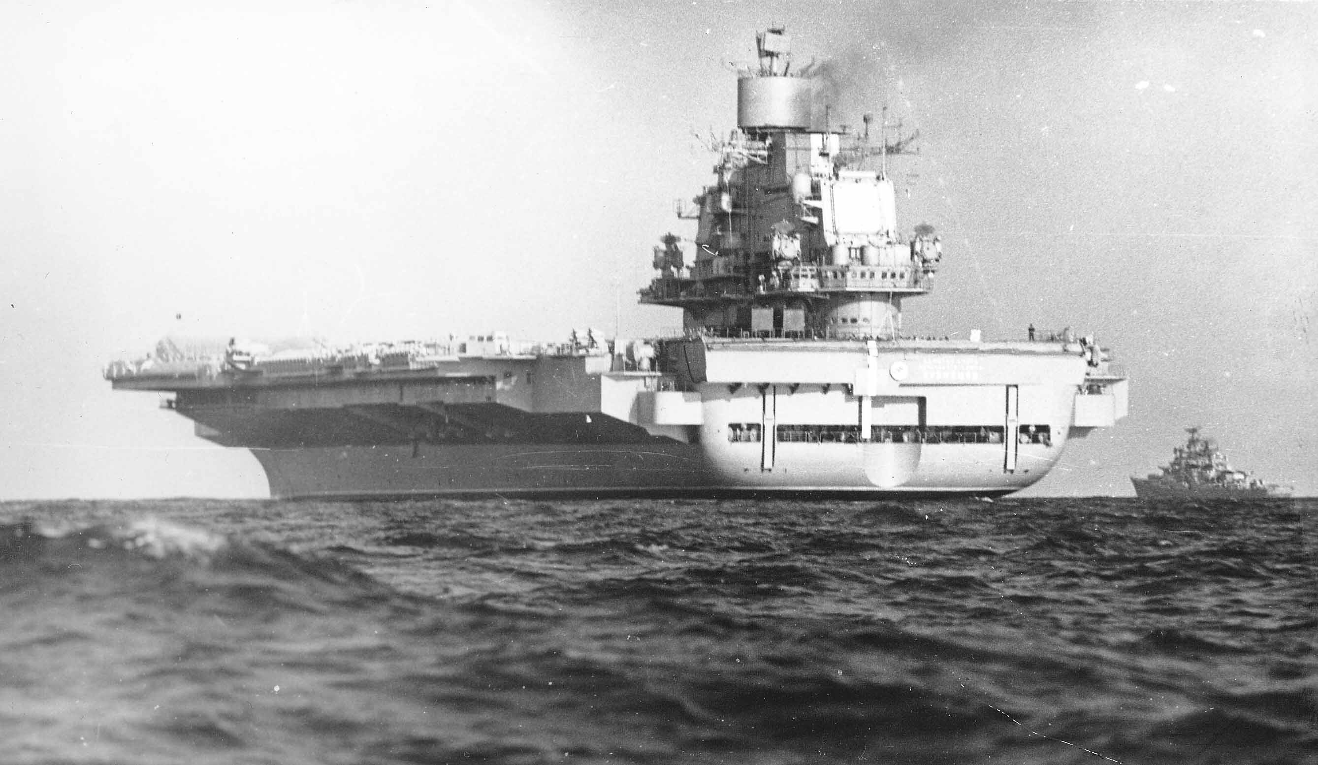 Выходили в море на честном слове. Дело в том, что во время предыдущего выхода в море "Кузнецов" попал в шторм, подзасолил трубки, потерял ход и чуть не был выброшен на берег Новой Земли. Кораблю был нужен серьезный ремонт, но из Кремля нажимали как могли, и тогдашний командующий Северным флотом адмирал Ерофеев доложил мне, что авианосец к походу готов. Ну, если сам командующий флотом докладывает, тут уж не отвертишься. Пришлось скрепя сердце дать добро. И Кузнецов вышел в море. Я пошёл на нём старшим. После прибытия выяснилось, что два котла из восьми вообще замазучены — полуобученные матросы принимали в котлы вместо дистиллята простую забортную воду. Но так или иначе мы в январе вышли в море, понаприглашали на него иностранных военно-морских атташе из всех средиземноморских стран, Англии и Германии и пошли вокруг Европы.