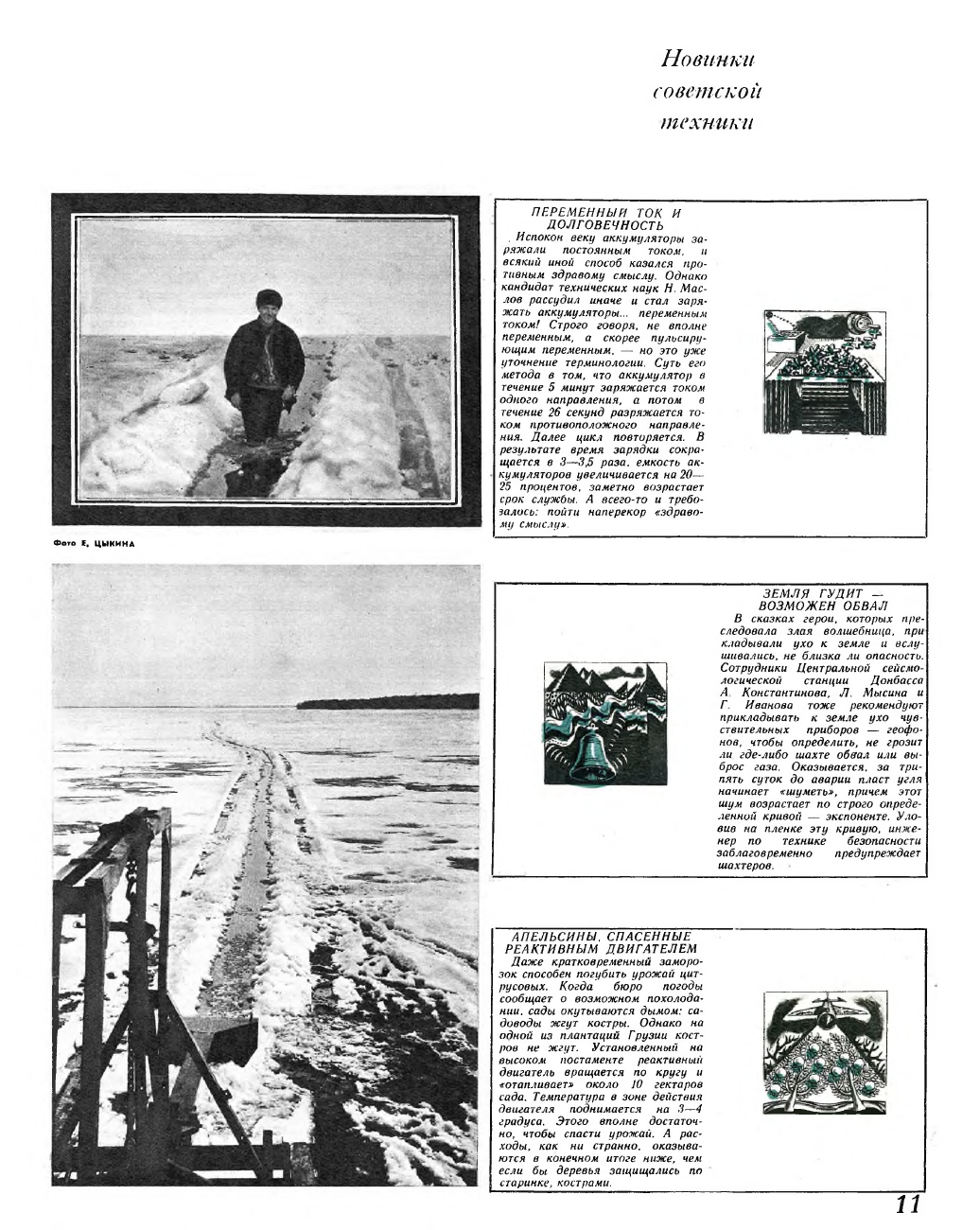 В августовском номере нашего журнала за 1969 год о публикован репортаж об испытаниях нового противоледового агрегата конструкции кандидата географических наук Е. Н. Цыкина. И в редакцию «Знание— сила», и в Институт географии АН СССР, где работает изобретатель,
