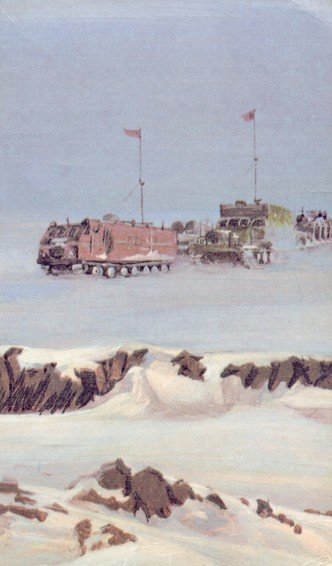 Ладно, все по порядку. 4 октября 1968 года мы покинули станцию на тягаче и "Харьковчанке". Тягач мы прозвали "Бетти", и ничем он особенно не знаменит, а вот нашу "Харьковчанку-22" знает весь мир: она прошла по Антарктиде десятки тысяч километров, побывала на Полюсе недоступности и украсила своим изображением почтовую марку... Да-да, именно эту, спрячьте ее