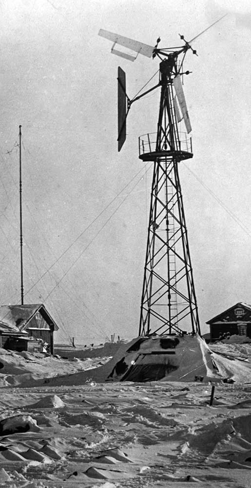 Уважаемый А.В.Милованов выложил в том же топике приказ, датированный сентябрем 1939 г. и предписывающий, в частности, установку в Амбарчике завезенного ветродвигателя. Вне всяких сомнений, это тот Д-12, что запечатлен на фото. Как раз в сентябре 39-го Б.А.Кремер начал собирать такой же ветряк на ЗФИ - это заняло 3 месяца. Д-12 из Амбарчика тому ровесник, а выглядит так, будто вчера воткнули.