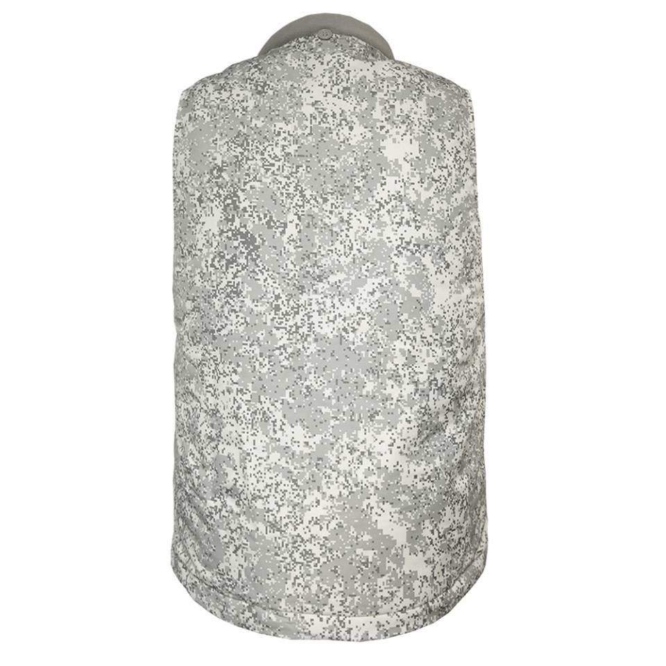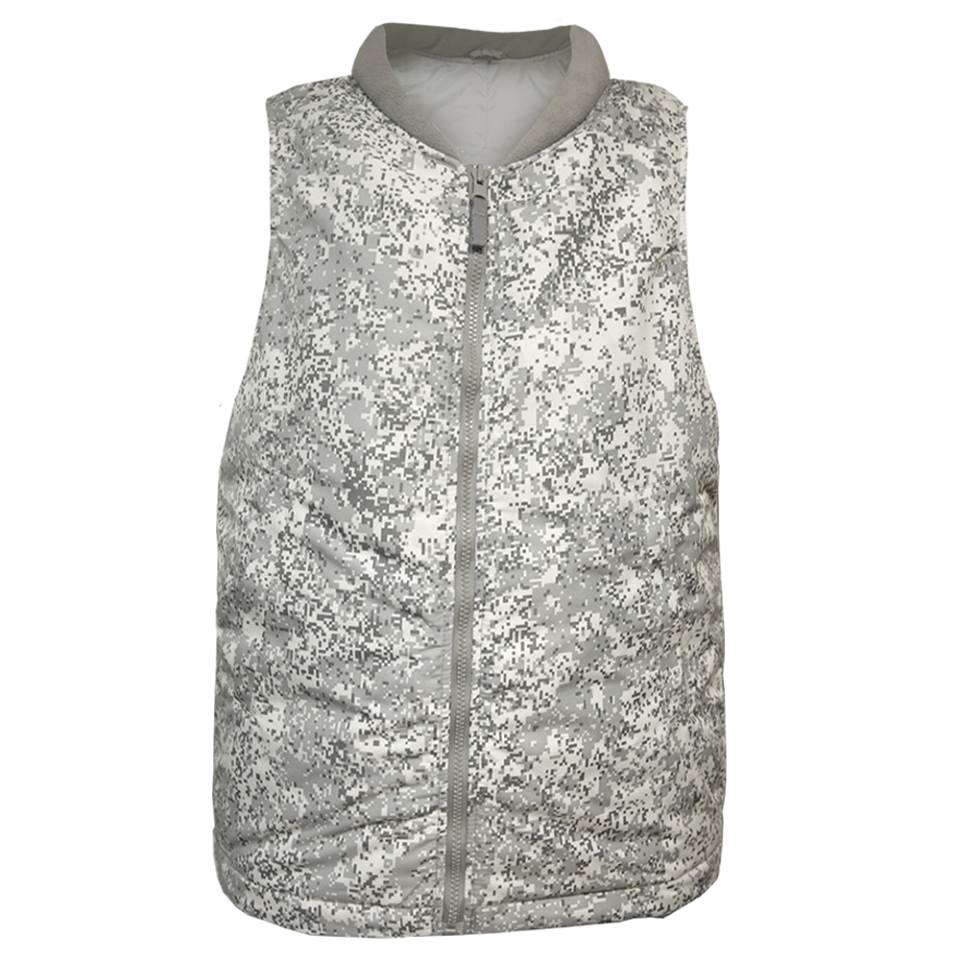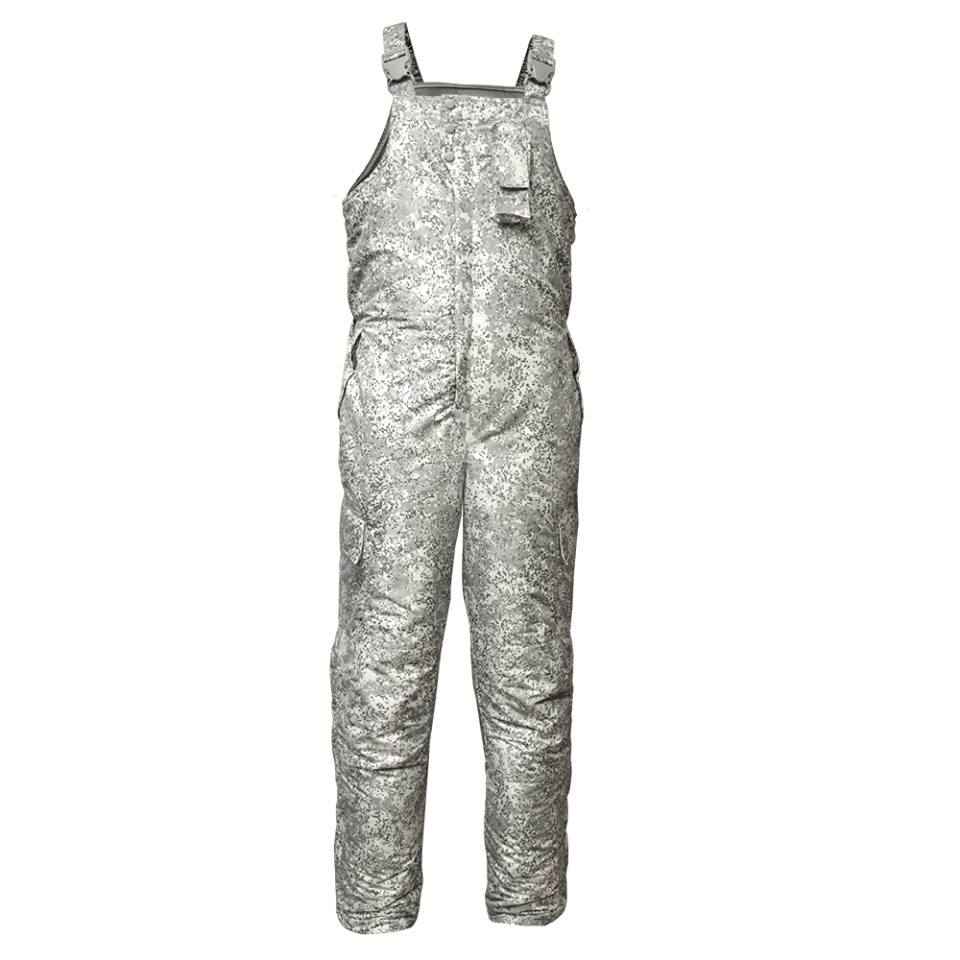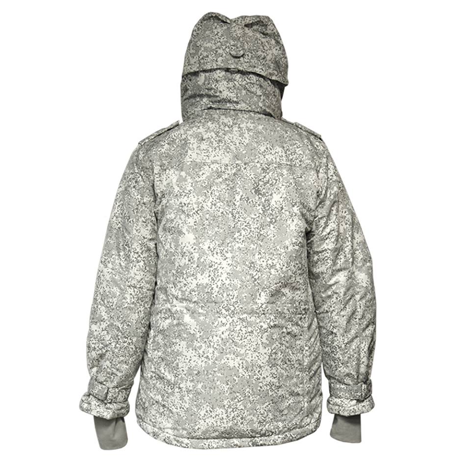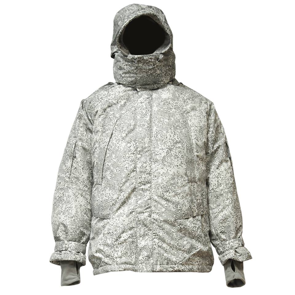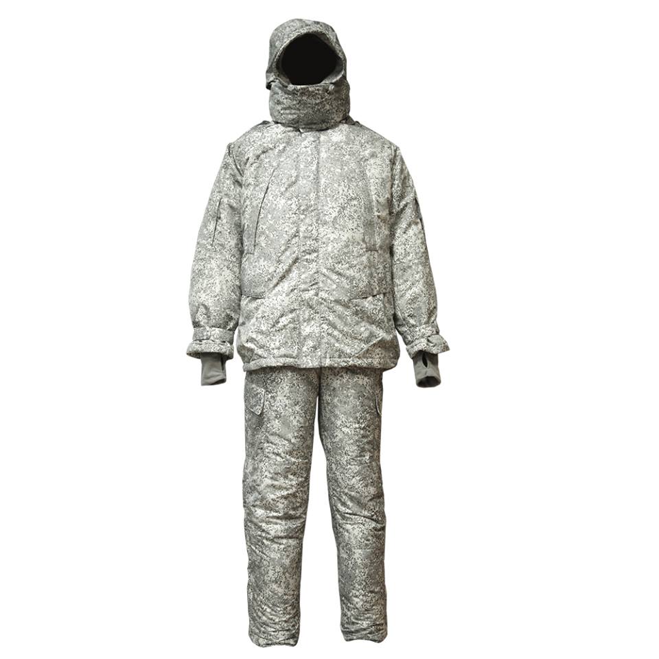 Камуфлированная расцветка ткани – это утвержденная камуфлированная расцветка «Цифра», только не в привычных защитных цветах, а в оттенках серого цвета, что обеспечивает маскировку в арктической местности.