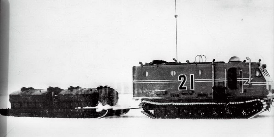 Мощность двигателя этого крейсера составляла 520 л.с. Не много, однако благодаря турбонагнетателям в пиковые моменты она могла быть чуть ли не вдвое больше. Этот дизель обеспечивал вездеходу достаточно внушительную по тем меркам скорость в 30 км/ч, а также позволял не только без особого труда таскать свою собственную массу под 35 тонн, но еще и буксировать прицеп массой до 70 тонн. Как правило, это были цистерны с топливом. Ведь основной груз в таких экспедициях - именно топливо, и его объем от общей массы груза доходил до 70%. Впрочем, в составе такого санного поезда скорость движения редко переваливала за 10-15 км/ч.