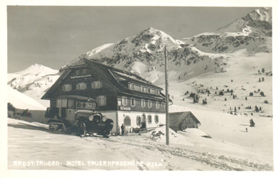 Эти сани приводятся в движение колесами из легкой стали с велосипедными спицами. Они имеют диаметр три фута и ширину два фута. На колеса приходится только малая часть веса трактора, они используются только для движения. Конечно, нагрузка может быть увеличена для улучшения сцепления. В основном вес машины несут лыжи обычной конструкции.