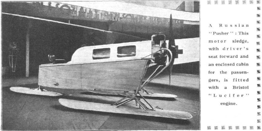 Из английского журнала Flight, January 3, 1929 - очень интересный орнамент к фото советских аэросаней (с английским двигателем).