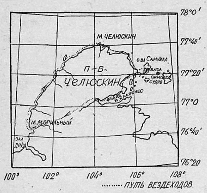 Кроме работы на базе и в ее ближайших окрестностях, нужно было испытать машины в условиях маршрутной работы на сотни километров. Маршрут был намечен вокруг северной части Таймырского полуострова - полуострова Челюскин.