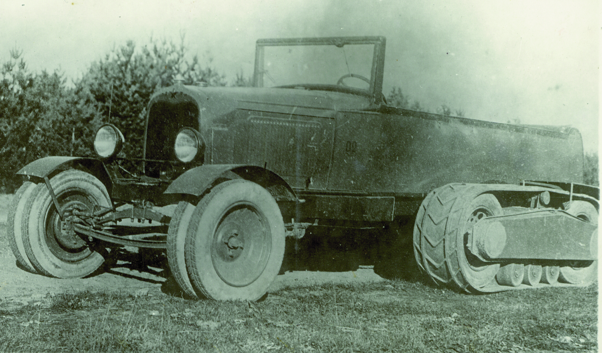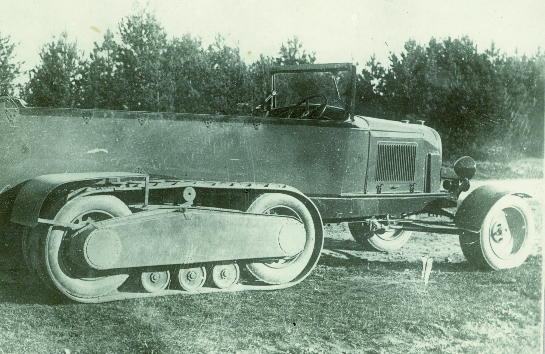 Это обычный полуторатонный грузовик ЗГАЗИ Горьковского автозавода. Путем монтажа на заднюю ось специальных движителей он превратился в полугусеничную машину. Движители представляют собой рамы с двойным скатом колес на концах и с натянутыми на них резино-металлическими гусеницами. На переднюю ось можно надевать по выбору колеса или лыжи.