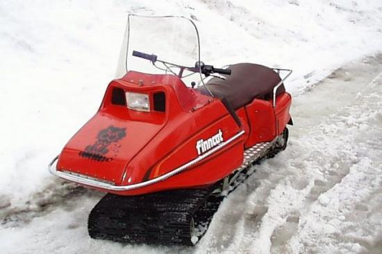 Любопытный (безлыжный) снегоход делали в 80-е годы финны. Назывался он естественно Finncat. Двигатель был не спереди, а под седенье. Сейчас это раритет, а жаль. Налицо определенные преимущества перед снегоходом с лыжами (можно использовать по мокрому снегу, даже по траве). Гусеница устроена по принципу "аккордеона" изгибаясь по горизонтали, что позволяет рулить самой гусеницей. Я бы сказал, что это по сути дествительно "гусеница".