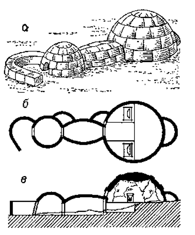 Снежная хижина эскимосов - "иглу" - является одним из образцов древнейшей материальной культуры народов Севера, отличающейся максимальным приспособлением к суровым природным условиям. Относясь к эпохе эскимосской культуры каменного века, "иглу" до настоящего времени не утратила значения временного укрытия, особенно в наиболее холодный период арктической зимы, когда ни одна из современных легких палаток не способна служить достаточно надежной защитой от холода и ветра. Снежная хижина - арктическое жилище, в котором можно жить даже без отопления.