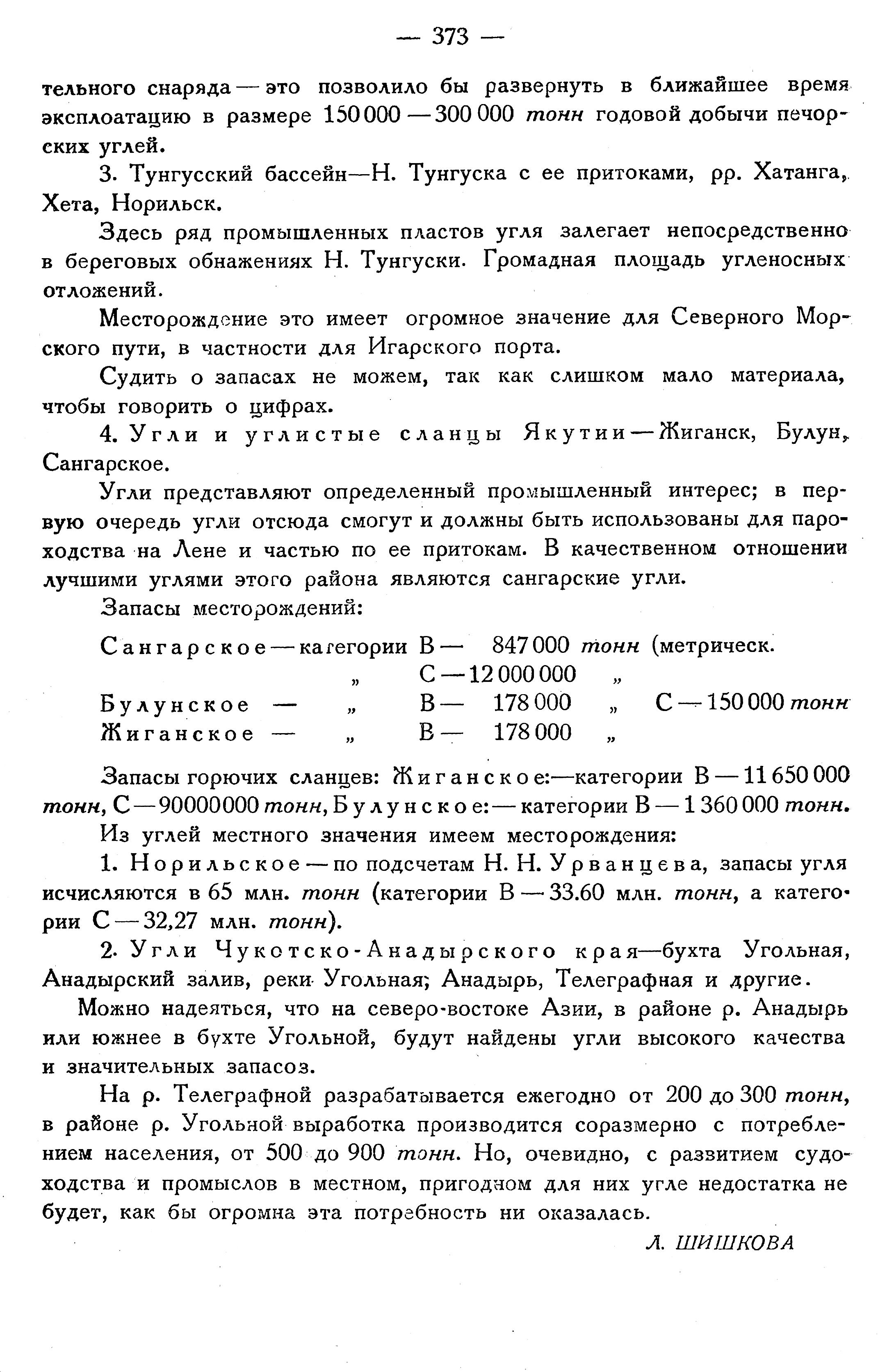 кончить их полностью на территории Чукотского и северной части Коряцкого округов и дать сводную геологическую карту. Наряду с этим будет продолжаться крупномасштабная съемка рудных участков, как известных сейчас, так и обнаруженных в будущем, с постановкой поисковых и легких разведочных работ и опробованием. Из полезных ископаемых главное внимание попрежнему будет обращено на олово и другие редкие металлы, из неметаллических ископаемых — на поиски месторождений угля хорошего качества, расположенных удобно в смысле вывоза, чему до сих пор известные мало удовлетворяют. В этом отношении наиболее благонадежна прибрежная часть Коряцкого хребта в средней его части, где имеется ряд таких удобных глубоких бухт, как Глубокая, Наталья, Анастасия и др. Кроме территорий, важных в оловоносном отношении, предположено изучить платиноносный район хребта Пекульней, полиметаллический район хребта Гыдан и Б. Анюя, некоторые наиболее интересные в золотоносном отношении участки собственно Чукотского п-ова, месторождения гранатового песка и агатов Чаунской губы и перспективно-нефтеносную область Пенжинской депрессии.