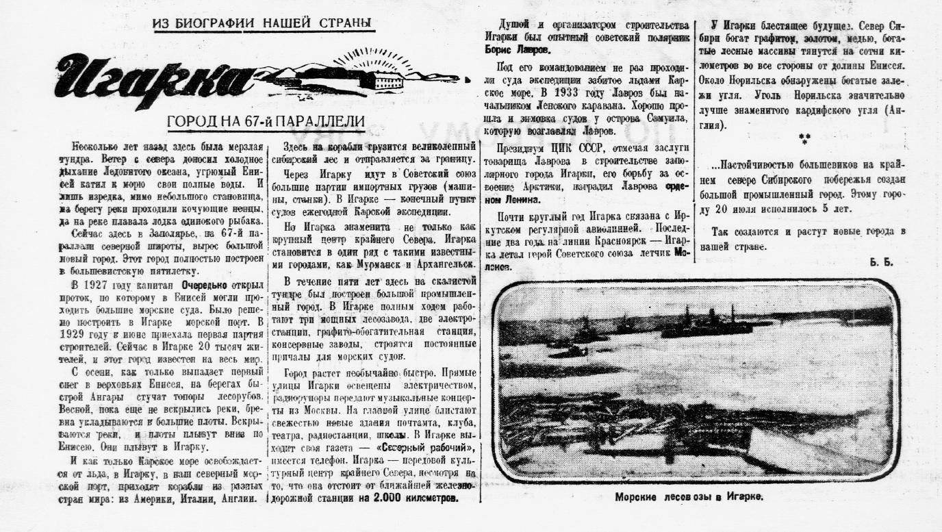 Игарка//Правда, 1935, № 66 (6312), 8 марта