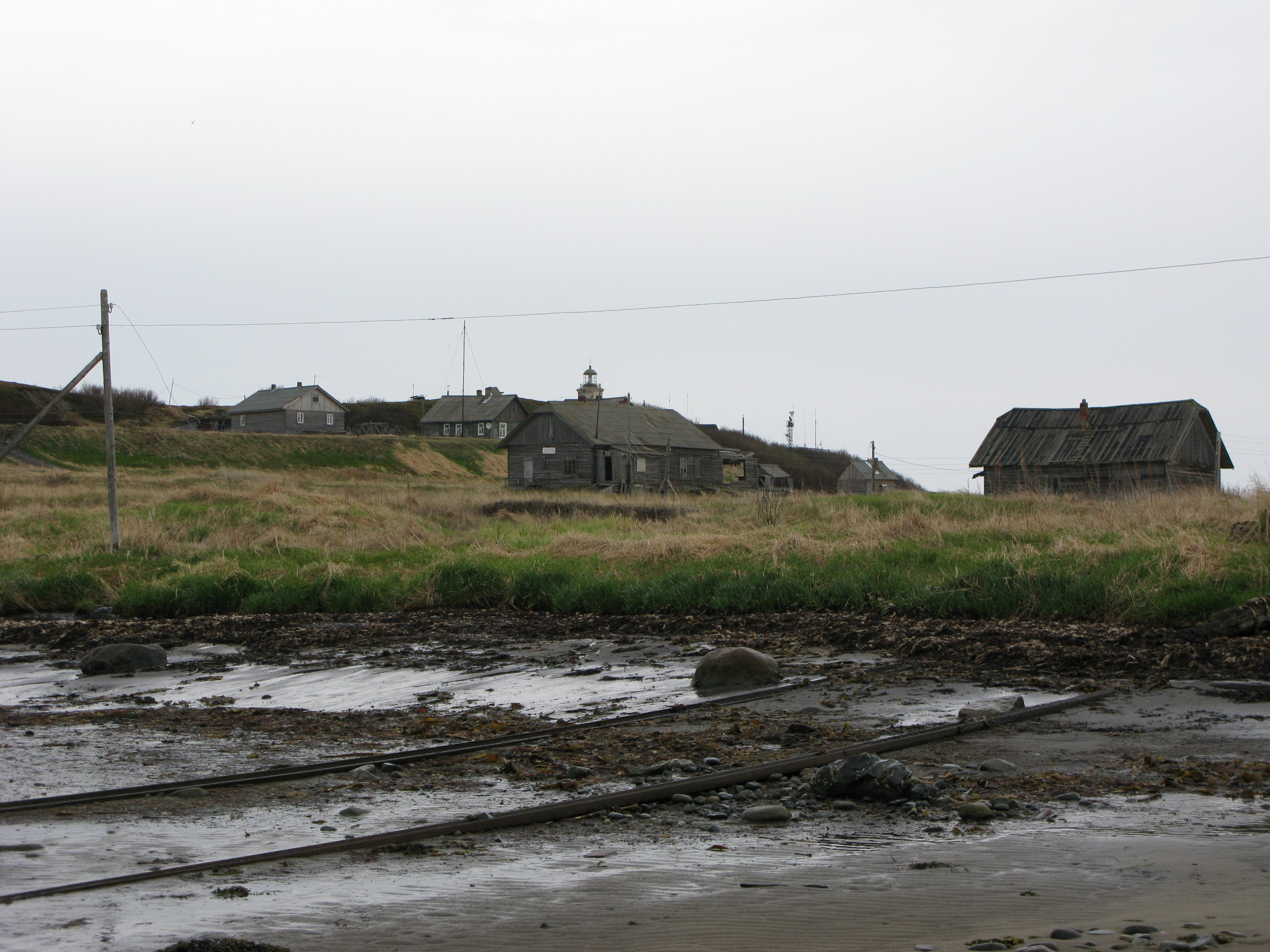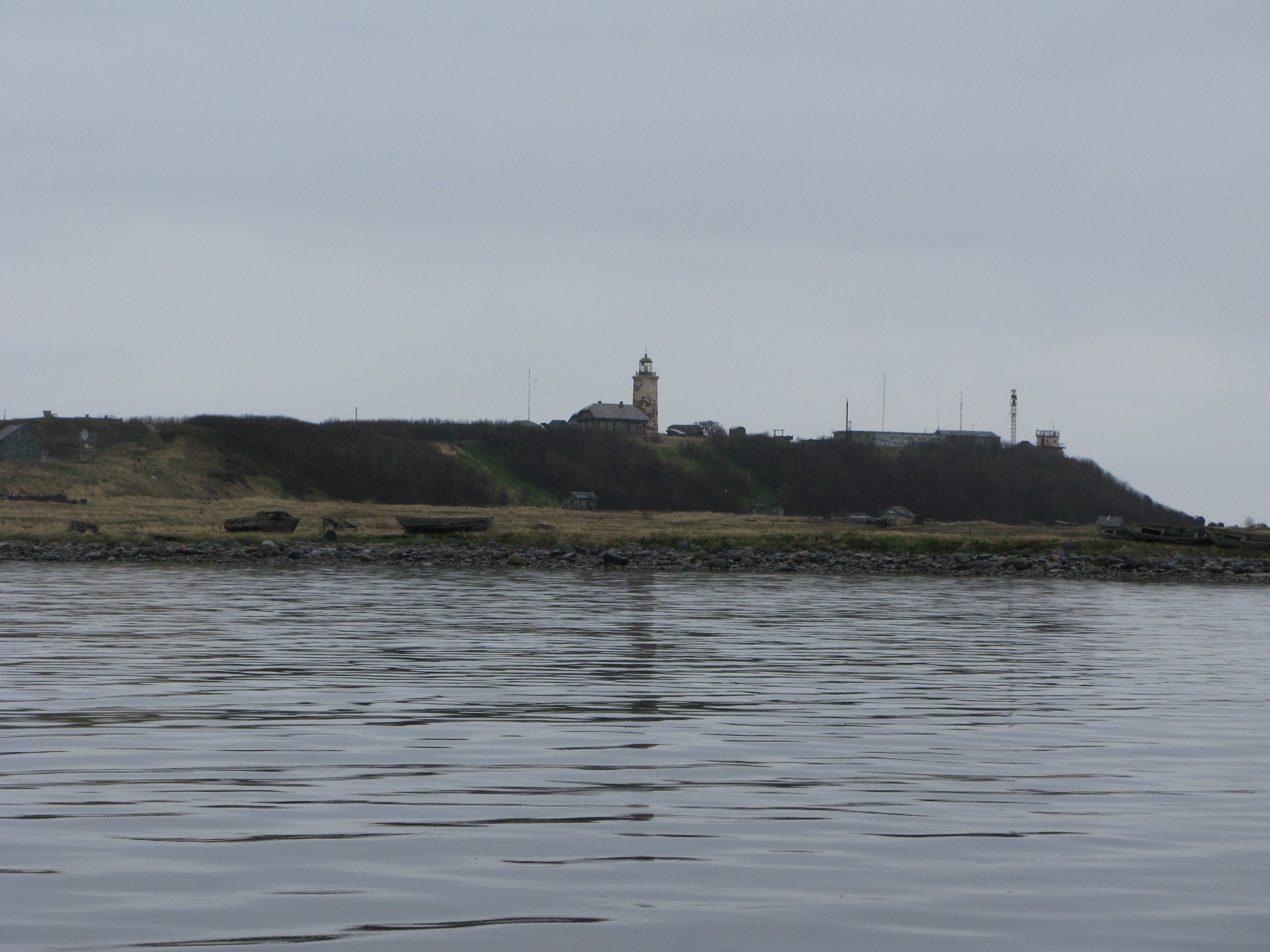Огонь постоянный обыкновенного цвета; осветительный аппарат отражательный из 16 ламп. Высота его от основания 50 и от уровня моря 90 футов. Горизонт кругом 16,3 мили... Смотритель и маячная прислуга живут в двух деревянных домах, саженях в 40 южнее маяка. Кладовая и остальные службы также деревянные, все здания окрашены светло-желтою краскою. Другого жилья на острове нет... При маяке кроме небольшого карбаса других спасательных средств не имеется. Пресная вода в колодце не хороша, а берут ее в озерах. Лесу нет, кроме кустарников у подошвы маячной горы, но на противоположном материке есть хороший сосновый лес, годный не только на дрова, но даже и на постройки... Сообщение с Архангельским портом (203 версты) летом на карбасах, зимою через пролив (12,5 версты) по льду на лошадях до деревни Дураковой и далее берегом...” [там же].