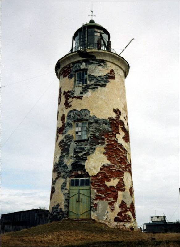 1 сентября 1842 года маяк начал действовать. Рейнеке так описал его: “Маяк [расположен] на трети длины этого острова от севера, на северном крае песчано-глинистой покрутости, покрытой мхом, травою и местами кустарником... Вид маяка: круглая каменная башня светло-желтого цвета с железным темно-серого цвета фонарем и темно-красною крышею. Высота башни от земли до вентилятора 58 футов.