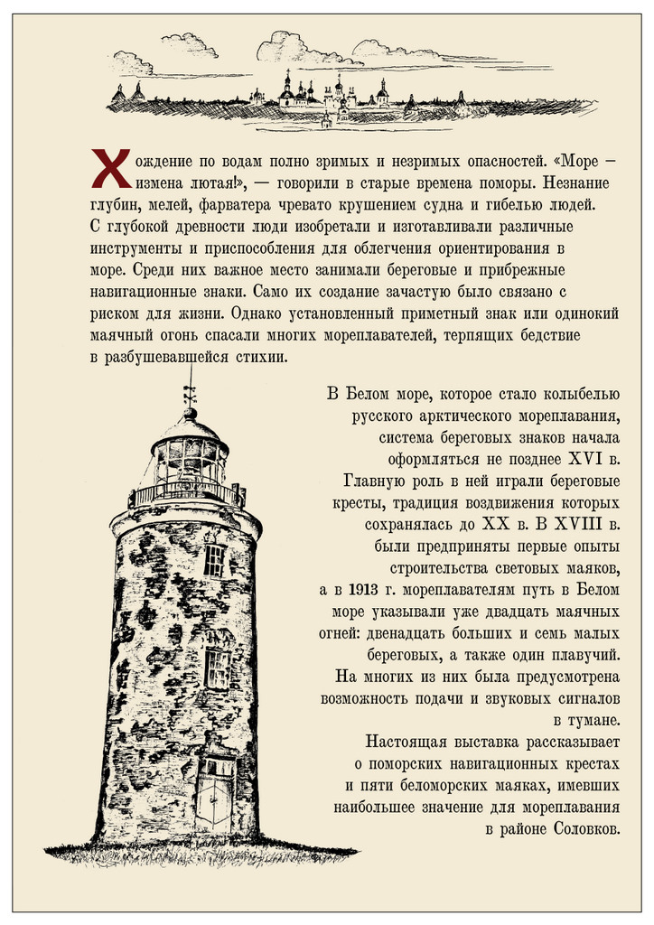 М. Ф. Рейнеке в своей книге “Гидрографическое описание северного берега России” [12] сообщает, что в 1820-х годах на острове стояла небольшая “несветящая бревенчатая башенка”. Кем и когда она была построена, он не упоминает.