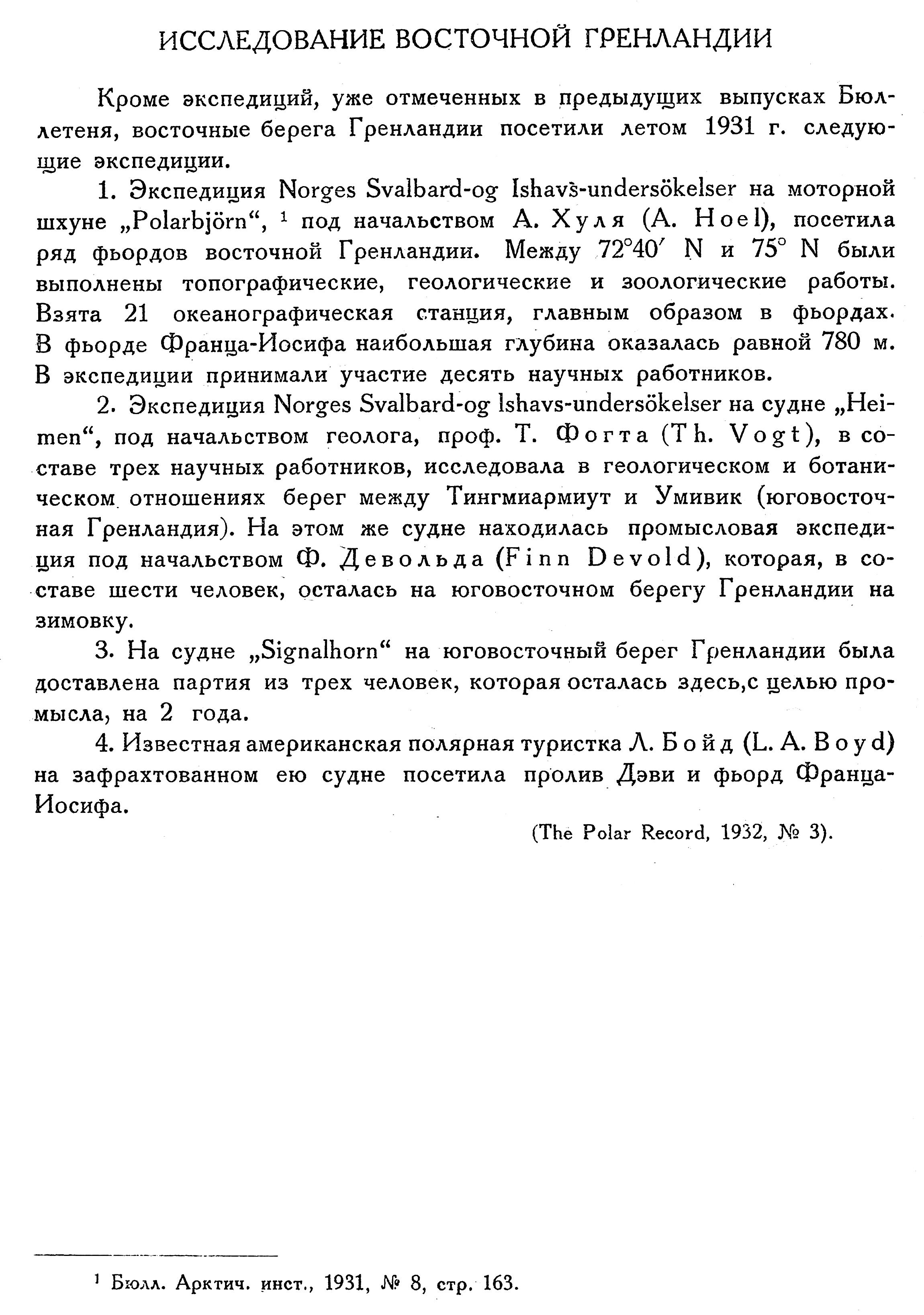 (Polar Record, 1932, № 4).