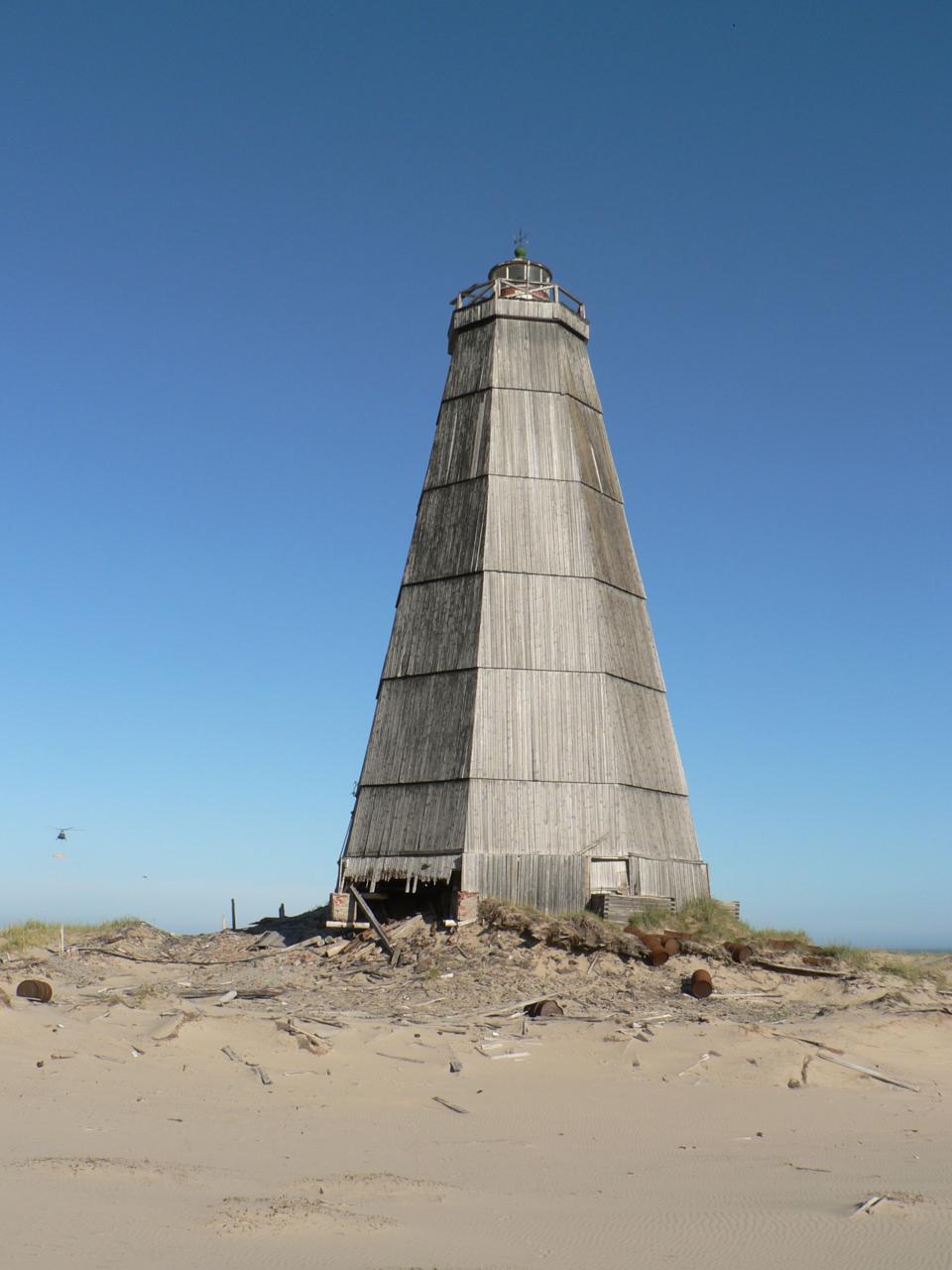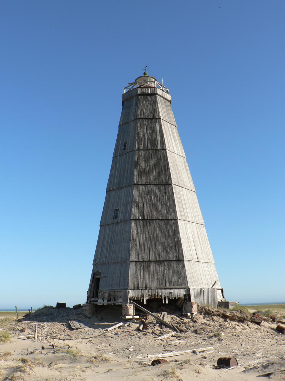 ...Через неделю добираемся до крайней северной точки маршрута - заброшенной деревушки Ходовариха, приютившейся на длинной песчаной косе, намытой Печорой у ее выхода в море. Это и есть Русский Заворот. Еще пятнадцать лет назад в Ходоварихе была метеостанция, жили маячник, пограничники. Сейчас осталась только метеостанция, последняя из многих бывших в районе, и в единственном жилом доме коротают дни двое работников. В последние годы, благодаря помощи заповедника, они могут себе позволить в отпуск выбраться на Большую землю. Собственных средств у метеослужбы для этого нет. Деревня представляет собой идеальную декорацию к экранизации фантастического романа "Пикник на обочине". Полуразваленные дома с обнажившимися кирпичными трубами, тысячи занесенных песком металлических бочек, обвисшие провода на покосившихся столбах. Посреди этого запустения высится громада деревянного маяка, на вершине которого, как послание от жителей исчезнувшей цивилизации, мигает фонарь. Он питается от батарей, содержащих радиоактивные элементы, но вот уже пять лет как маяк никто не осматривал. Замком Иф прозвали маяк местные метеорологи. Они уверяют: "Там всего 50 миллирентген. Нормальный природный фон, как в любом городе. На других маяках положение либо хуже, либо никто не имеет понятия, что там вообще происходит".