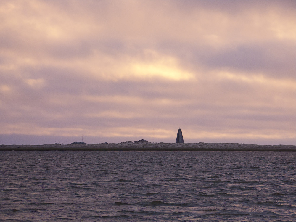 По приглашению дирекции заповедника мы отправляемся в короткую экспедицию из Нарьян-Мара по Печорской губе до Баренцева моря. Кроме меня, в лодках два инспектора заповедника - Николай и Андрей, и Петр, орнитолог из Москвы, собирающий материал по тундровым птицам. На нашем пути будет мыс Костяной Нос, остров Чаячий, тундры у речки Хабуйки и, наконец, остров Долгий и бывший поселок Ходовариха у Русского Заворота на самом выходе Печоры в море. Мы отводим на все про все две недели и расписываем маршрут по дням, но погода на Севере всегда вносит свои коррективы. Незадолго до нашего приезда в Нарьян-Мар подула моряна - так называют на Севере мощное вторжение арктических воздушных масс, несущих с собой холод, дожди и штормы с волнением до 5-6 баллов. Бывает, моряна дует две-три недели подряд. К счастью, на третий день ветер стих, и нам удалось протоками Печоры проскочить до Костяного Носа. Здесь открытая вода, с одного берега другого не видно, так что в штормовую погоду лучше оставаться на суше. На мысе когда-то была деревушка. Единственный оставшийся от нее дом поправили, превратив в опорный кордон заповедника, где постоянно дежурит пара инспекторов, сменяясь каждые две недели. Есть рация, движок и даже спутниковая "тарелка" - в общем, уверенная связь с Большой землей. Второй год на кордоне гостят студенты-гидрологи. Для них это хорошая практика, для заповедника- источник оперативной информации о состоянии природы, ведь научный штат сокращен до минимума.