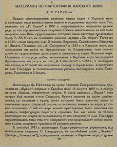 In the course of the passage from Archangel to Vladivostok the Expedition on the ice-breaking cargo-steamer „А. Sibiriakov" effected some modifications in the cartography of the islands of the Kara Sea. The most important work done was the survey of Sverdrup Island, for which