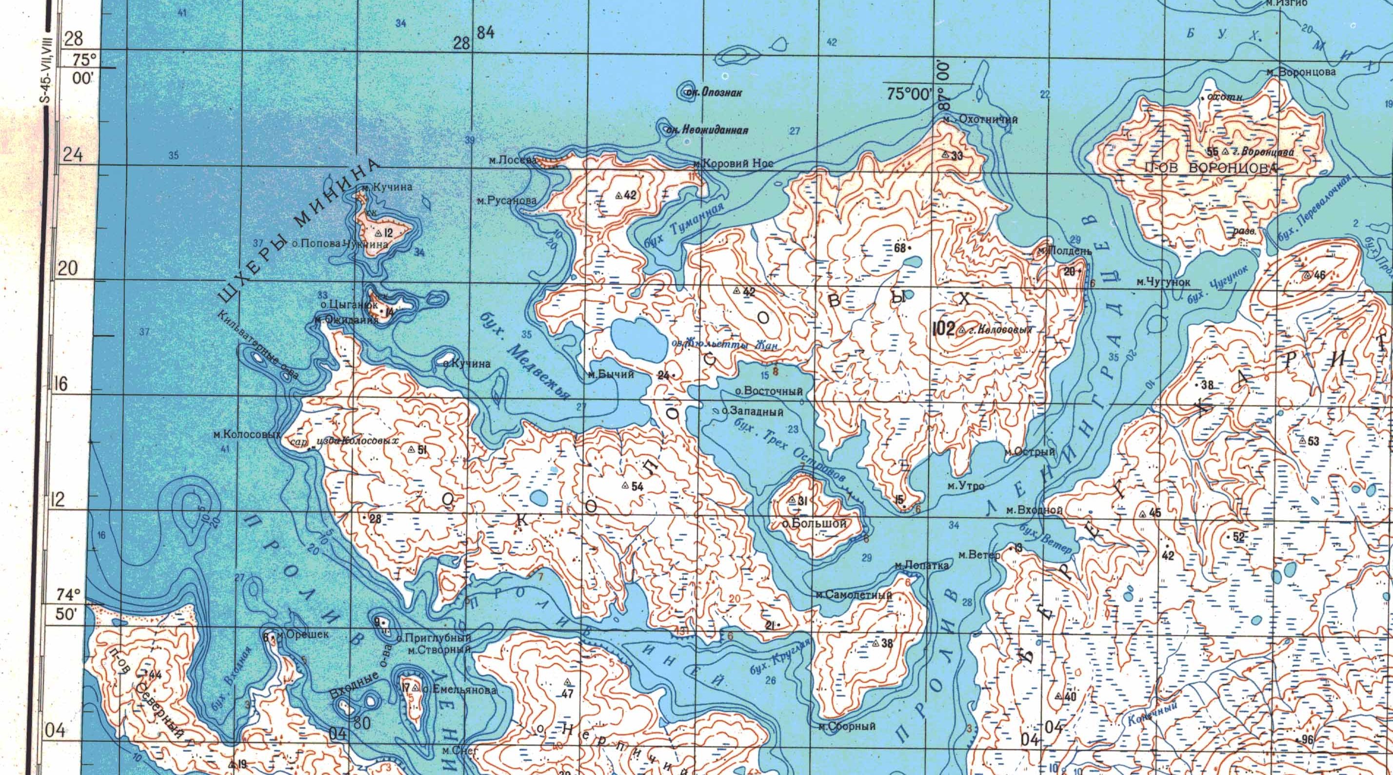 Но упорный штурман не сдавался и в конце июля 1740 года в третий раз направил все тот же бот «Обь-Почтальон» на восток. Коченея от холода, казавшегося еще злее из-за се-верного ветра, стоял Федор Минин на мостике и разглядывал очертания неизвестных бере-гов. Мельчайшие капельки тумана замерзали на стеклах бинокля, и приходилось все время протирать их. Когда туман настолько сгустился, что плыть в шхерах стало опасно, штурман приказал бросить якорь вблизи какого-то острова. Впоследствии оказалось, что это был да-леко выдающийся в море кусок материка. (Этот полуостров всего в 15–20 километрах от острова Колосовых).