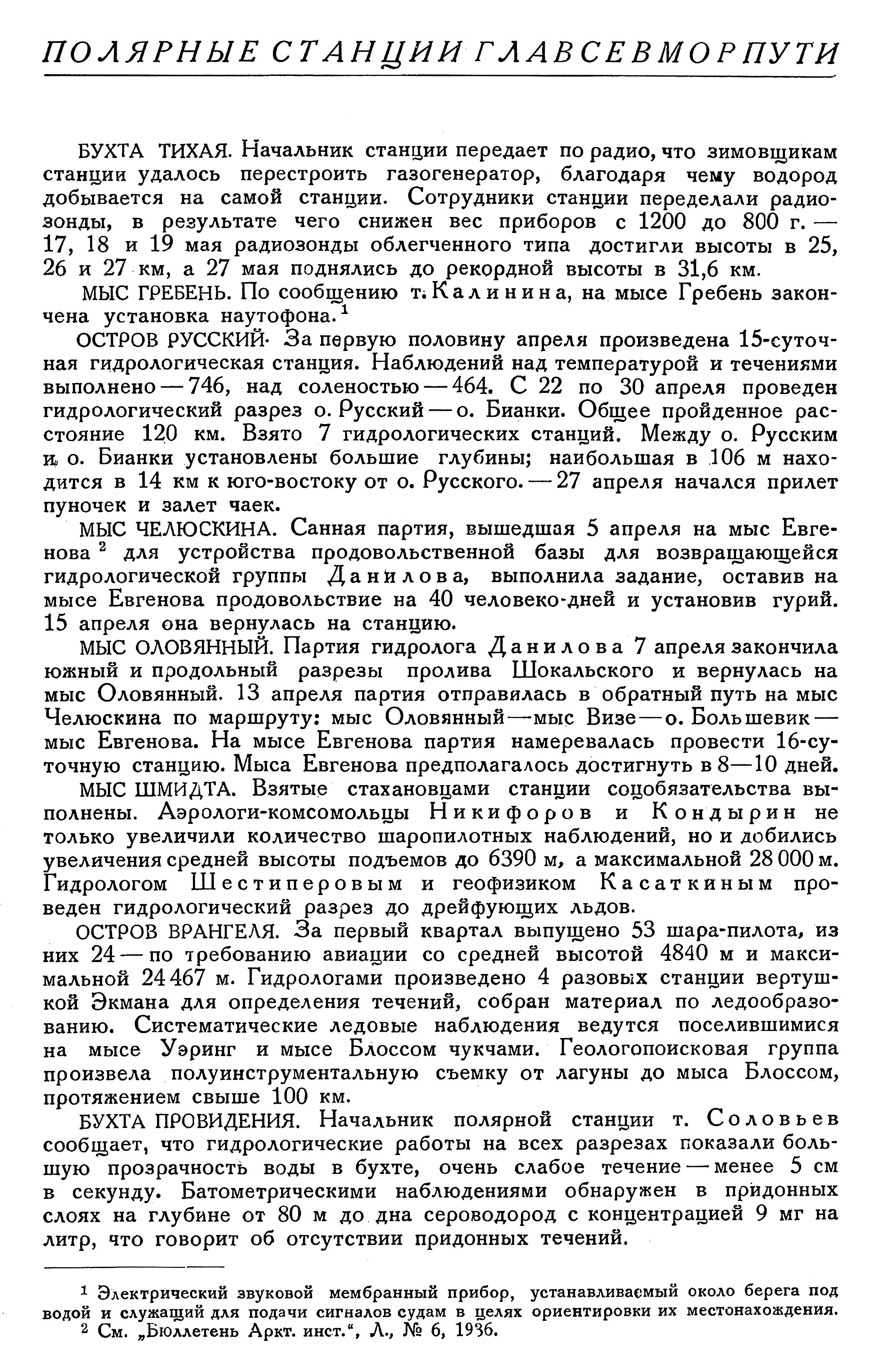 БУХТА ТИКСИ. Зимою 1936 г. выполнен гидрологический разрез по линии мыс Костистый — о. Мостах. Ведется строительство теплицы, которую предположено закончить в начале марта.