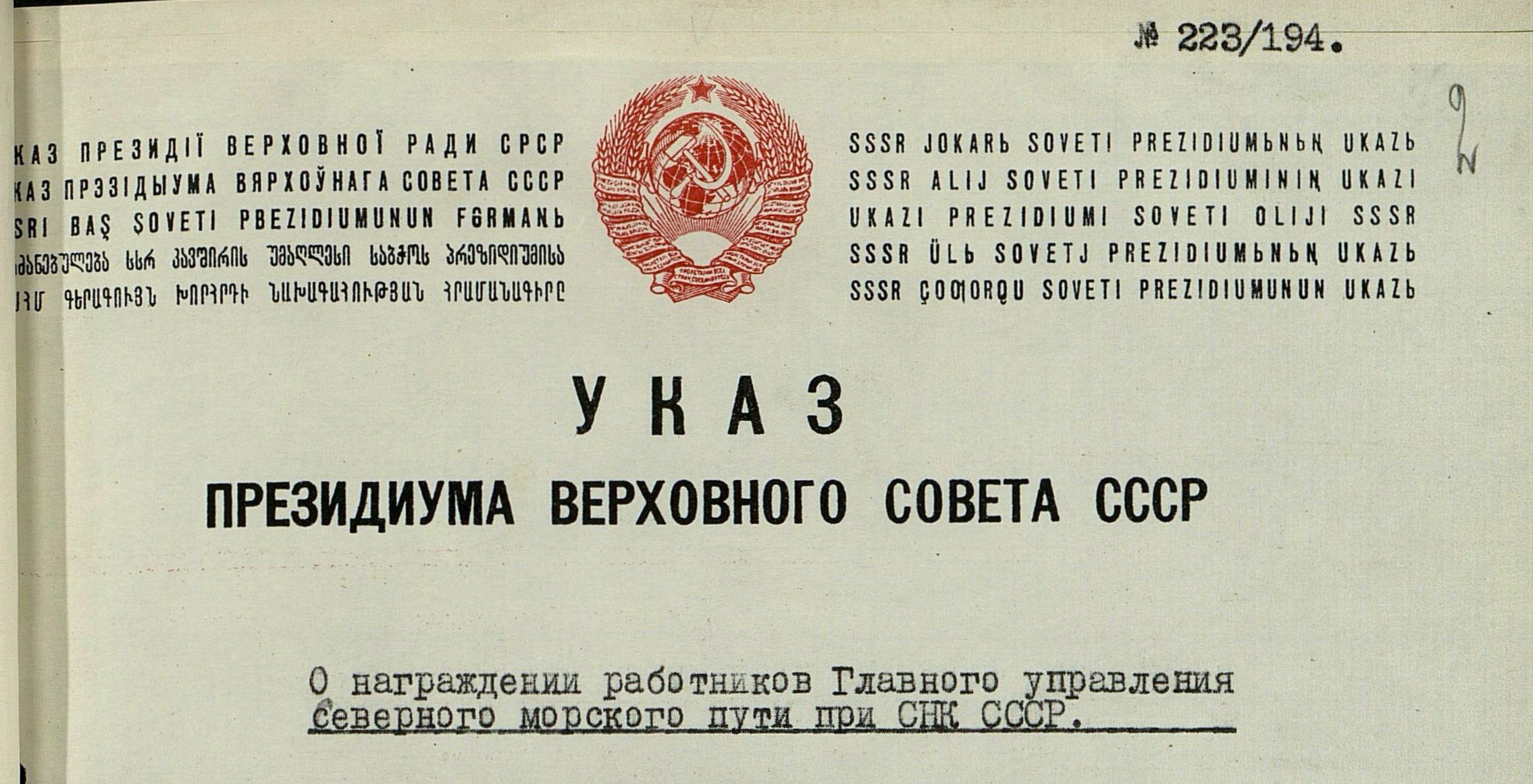 По сообщению исполняющего обязанности начальника Главсевморпути тов. Кузнецова, нам присуждена третья премия во Всесоюзном социалистическом соревновании за работу в третьем квартале 1948 года, в сумме 360 рублей.