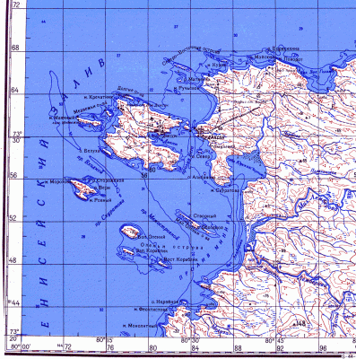 Наконец 17 августа, около 5 час. дня, на горизонте показался остров Диксон. Очень скоро мы увидели громадную мачту беспроволочного телеграфа,а в 7 час.вечера начали входить в пролив между островом и берегом. Около 8 час. стали на якорь. Здесь находились пароход „Туруханск" и три лихтера. Еще мы не успели стать на якорь, как подошел мотор, в котором были доктор Кушаков, лейтенант Транзе, еще кто-то и матрос. Сначала они вышли на „Таймыр", а потом приехали к нам.