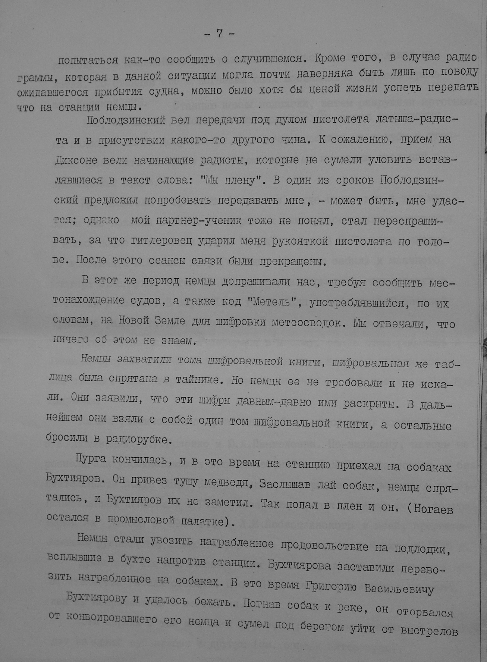 На Диксоне были случаи, когда медведь нападал на человека и сжирал. Как-то повариха вышла из дома и пропала, а надо ей было пройти всего несколько метров до другого жилища... Медведей начали отстреливать и вспарывать им животы. В одном нашли золотую сережку...
