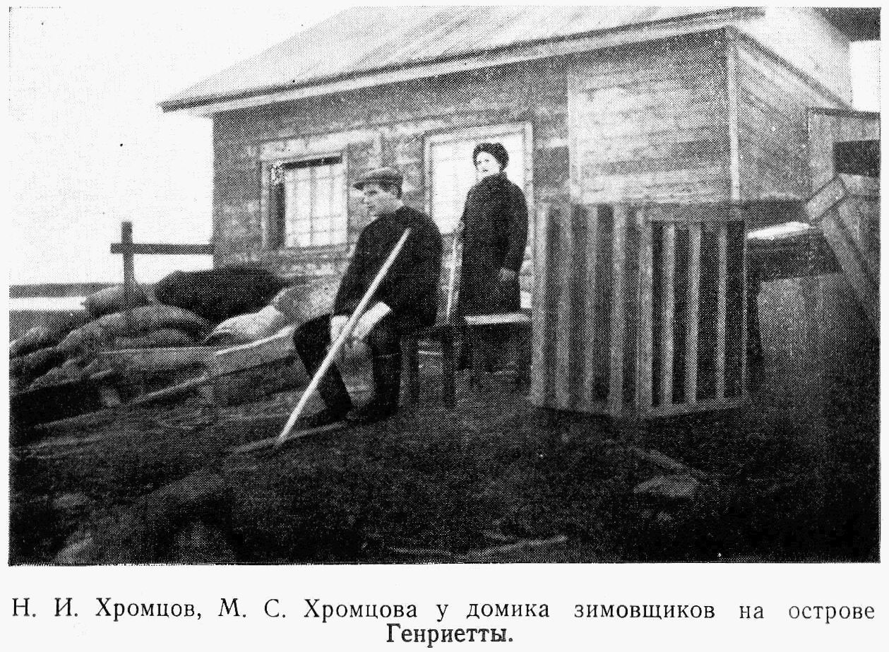 На высоком берегу острова были поставлены две палатки. В одной из них установили магнитный теодолит; другая находилась около места, выбранного для астрономического пункта, и служила складом инструментов, различного снаряжения и запаса продовольствия, а также пристанища для работавших на берегу – на тот случай, если «Садко», вследствие подвижки льда, будет принуждён на некоторое время отойти, не успев взять людей с берега. Во время выгрузки строители работали на сборке жилого дома, склада и радиорубки. Научный состав экспедиции был занят обследованием и топографической съемкой острова, производством гидрологических, метеорологических и других наблюдений. Воспользовавшись тихой и ясной погодой и прекрасной видимостью, Хромцов и Самойлович 1 сентября отправились на восточный берег острова Генриетты, откуда увидели остров Жаннетты. Расстояние до него казалось равным 15-20 милям. 5 сентября строительство полярной станции было закончено, и «Садко», распрощавшись с зимовщиками и отсалютовав им прощальными залпами из ружей и гудком, направился к острову Жаннетты. Самойлович рапортовал об открытии новой, 57-й по счету полярной станции Главсевморпути.