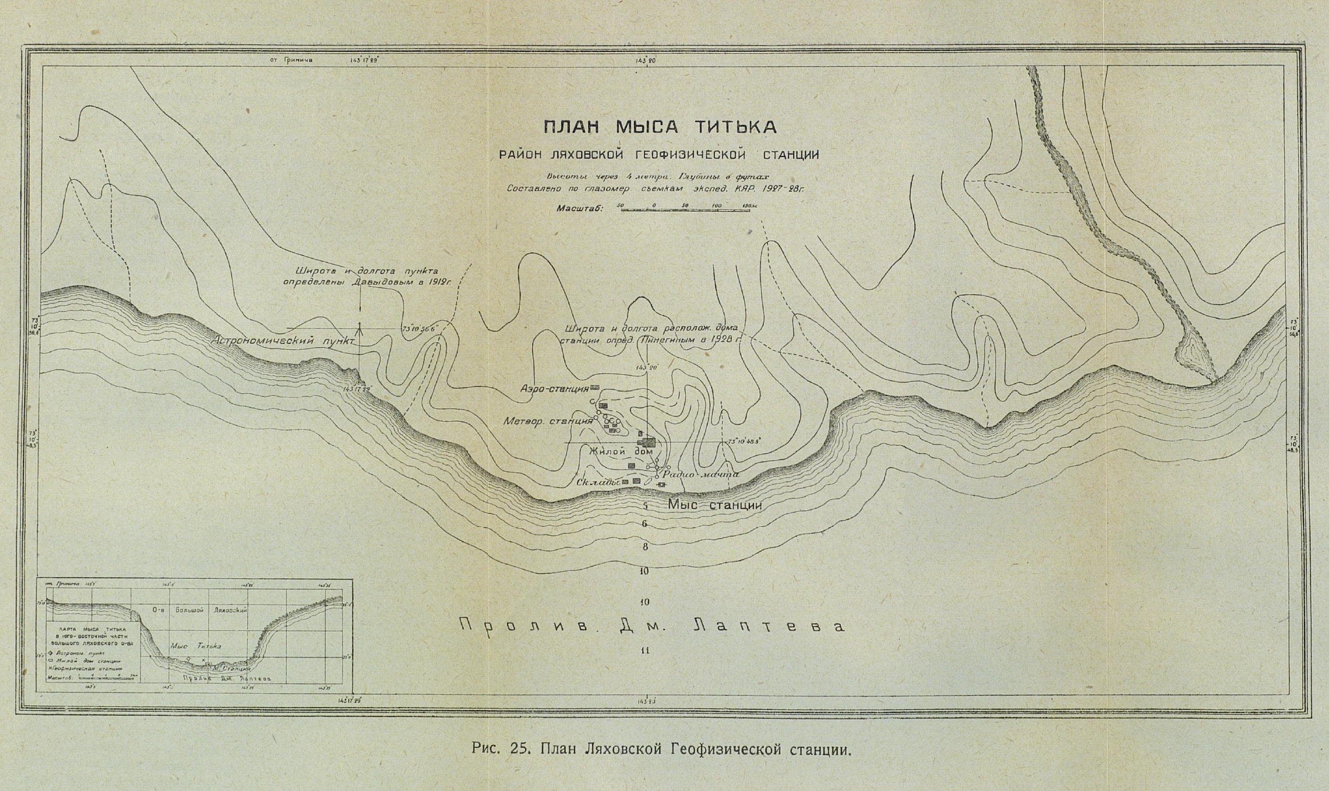 о. Большом Ляховском радиометстанция, состав которой, помимо станционных наблюдений,выполнил ряд экскурсий, включая посещение южной части о. Котельного (в 1929 г.).