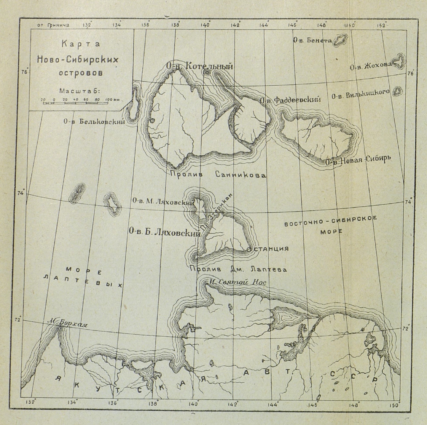 В 1926 г. шхуна „Полярная Звезда" прошла проливом Санникова из р. Колымы в р. Лену. На следующий год то же судно посетило о. Большой Ляховский и на