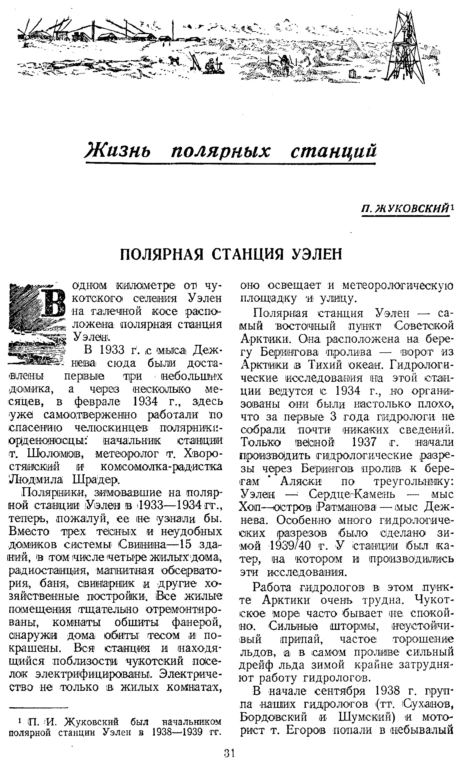 Жуковский П. Полярная станция Уэлен //Советская Арктика 1940 №9 с.34-40