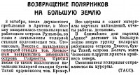 ВОЗВРАЩЕНИЕ ПОЛЯРНИКОВ НА БОЛЬШУЮ ЗЕМЛЮ