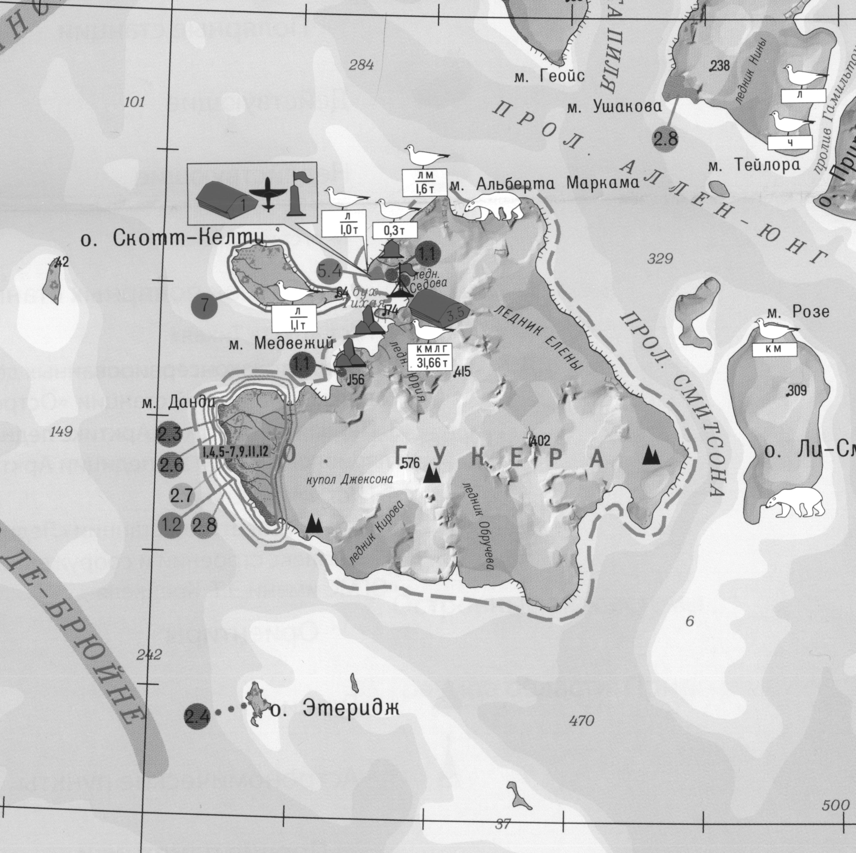 {1} ЦA ММФ, ф. ГУСМП, оп. 2505, д. «Острова СЛО». Н. Н. Урванцев. Два года на Северной Земле. Л., 1935, стр. 46.