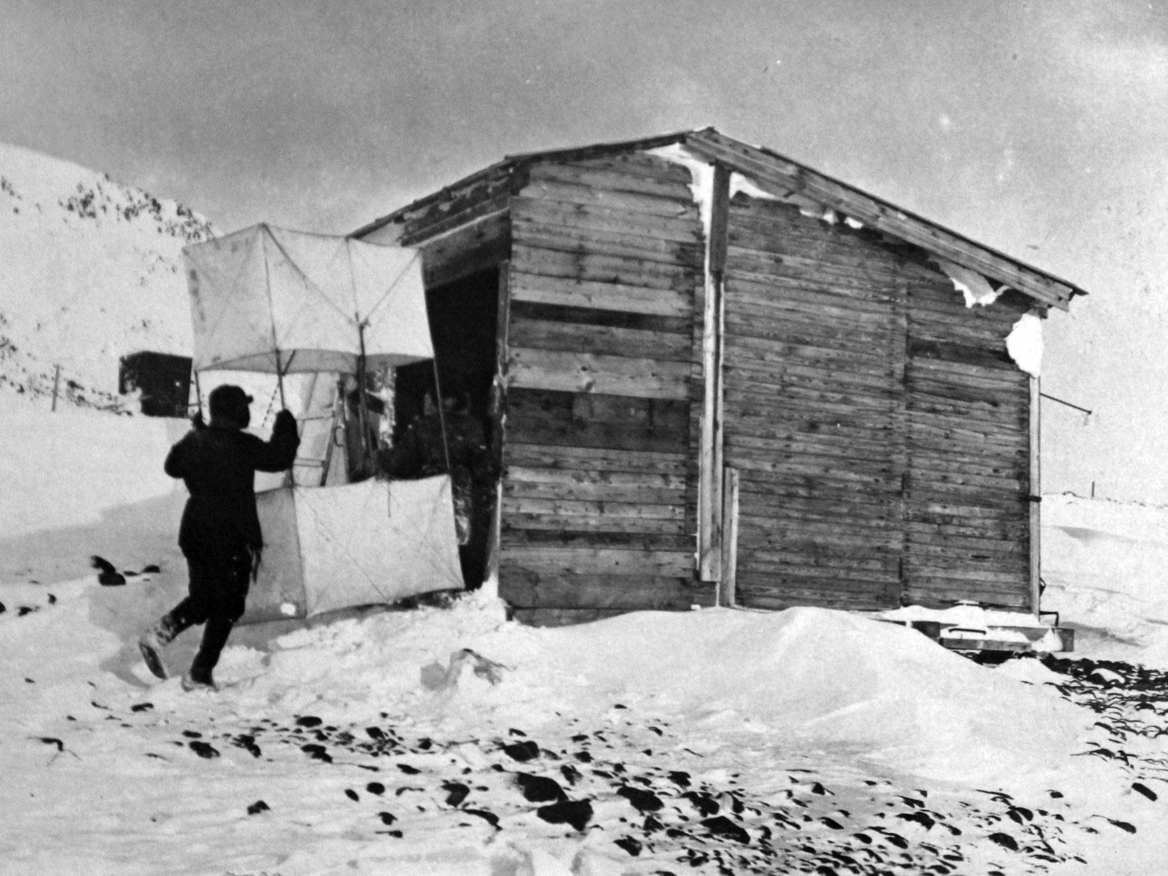 ЗЕМЛЯ ФРАНЦА-ИОСИФА, 23 января. На Земле Франца-Иосифа, при 20-градусном морозе пронесся жестокий ураган, сопровождавшийся метелью. Ветер был настолько силен, что валил с ног. Дышать было невозможно. С западной стороны станции сугробы сровнялись с крышей. Снег проникал в помещение станции через три двери. Сотрудники станции для производства работ вылезали наружу через чердак и слуховое окно.