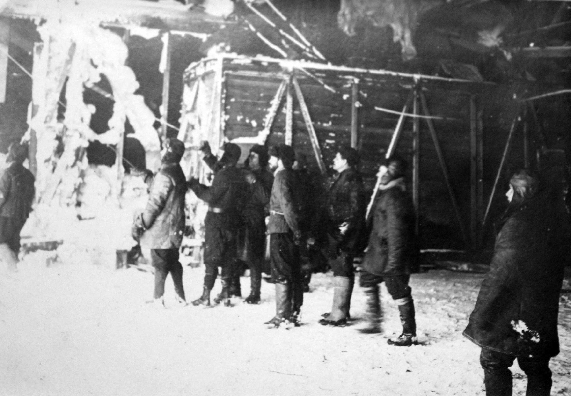 Группа зимовщиков, едущих на станцию б.Тихая в 1934 г.