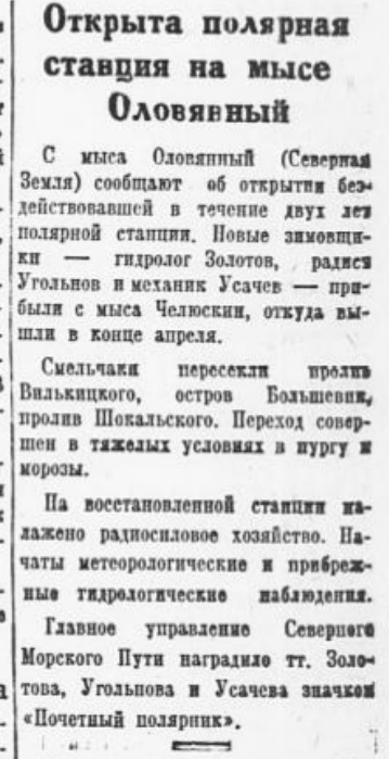 Всего в 1944г морских п/ст – 69, в т.ч. Амбарчик, Четырёхстолбовой, о. Шелаурова, о. Генриетта - законсервирована. (Материковая сеть: Кресты Колымские, Чокурдах).