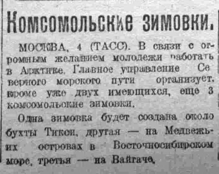 Зимовщики острова Врангеля передают по радио: "Мы выражаем свое глубокое отвращение к подлым фашистским наймитам - Рыкову, Бухарину, Ягоде и другим заговорщикам. Беспощадно раздавить этих омерзительных гадов! Враги еще есть, они притаились и точат свои волчьи зубы, чтобы перед смертью укусить нас. Повышая свою революционную бдительность, мы будем разоблачать и уничтожать врагов. Железной стеной сплотимся вокруг родной партии большевиков, вокруг нашего великого товарища Сталина".