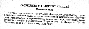 Здесь нам, по заданиям, предстояло сменить зимовавших сотрудников Обсерватории и самим на целый год оказаться пленниками в царстве льдам ночи. Нас с радостью встретили старые зимовщики — рассказали нам о своем житье и тех особых условиях, в которых приходилось работать. Они очень интересовались- тем, что делается на „Большой Земле“, и с жадностью