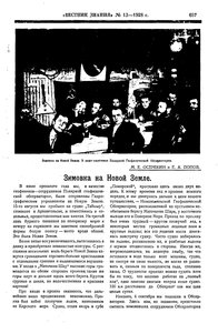 М.Острекин и Е.Попов.Зимовка на Новой Земле// Вестник знания. 1928. №13 с. 657-663