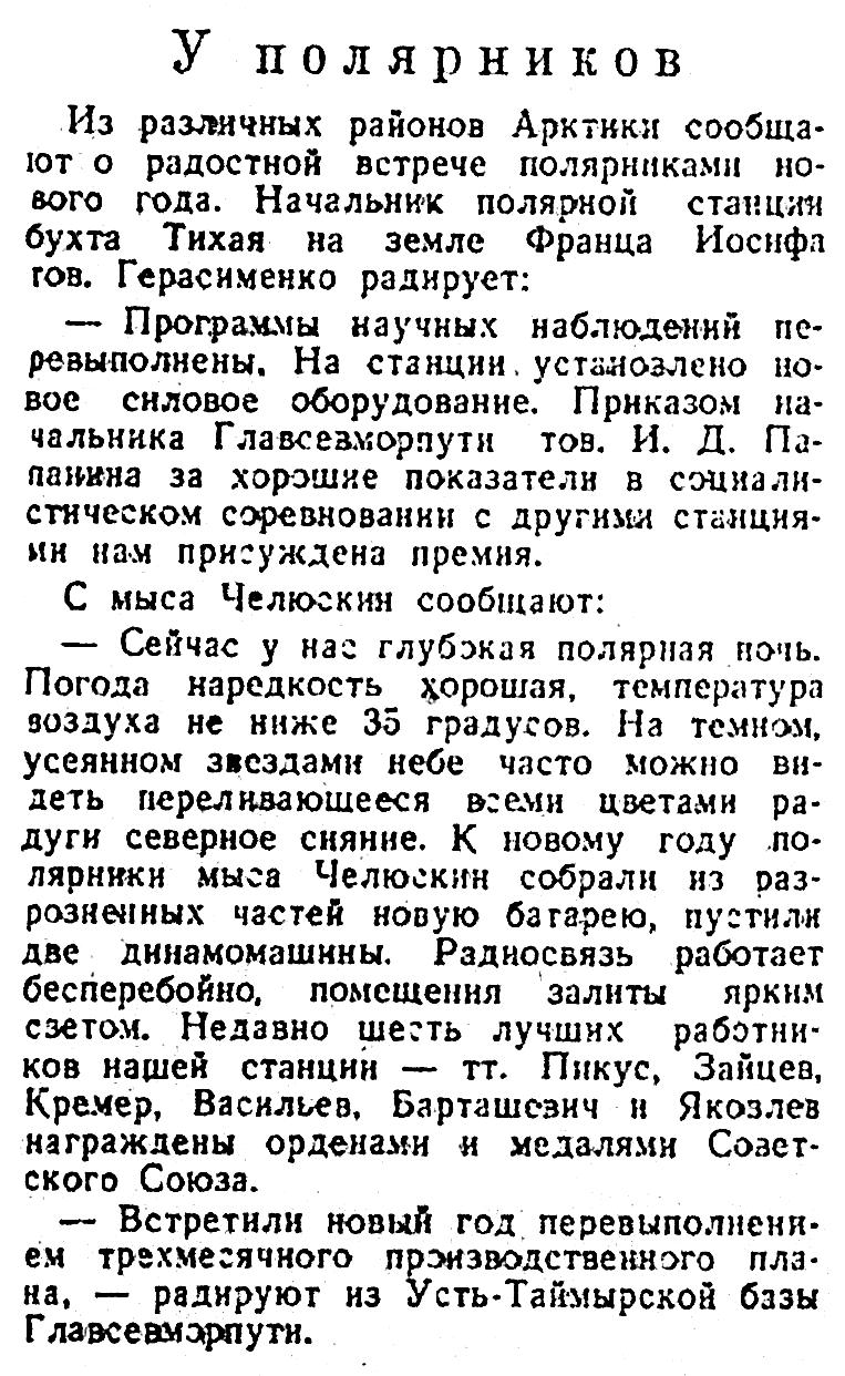 В беседе с нашим корреспондентом тов. Папанин сказал: