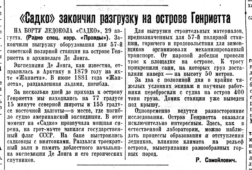 Полярники острова Генриетты подвели итоги проделанной за год научной работы. Соревнование, взаимная помощь, дружная работа всего коллектива позволили не только выполнить, но и перевыполнить намеченную программу работ.
