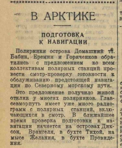 С 15 марта с. г. на полярных станциях ГУСМП производились ежечасные футшточные наблюдения, организованные Всесоюзным Арктическим институтом с целью получения более обширного материала, необходимого для построения котидальной карты для Северного Полярного моря. Наблюдения производились непрерывно в течение 16 суток, а на некоторых станциях, как например на мысе Челюскина, о-ве Диксона и мысе Шмидта (Северном) — 32-х суток. На последней станции установлен мареограф. Наблюдения над приливами и отливами производились на следующих станциях: 1) б. Тихая (Земля Франца - Иосифа), 2) мыс Желания, 3) Русская Гавань, 4) Маточкин Шар, 5) Вайгач, 6) Югорский Шар, 7) Маре-Сале, 08) о-в Белый, 9) о-в Диксона, 10) Усть Порт, 11) Новый Порт, 12) мыс Челюскина, 13) о-ва Самуила, 14) О-ва Каменева, 15) б. Тикси, 16) о-ва Медвежьи, 17) мыс Шмидта (Северный) и 18) Ванкарем.
