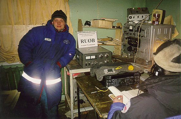 пробивающихся раз в 2-3 года к этим берегам. Мы же решили выбрать более удобное с точки зрения радио место в полукилометре от основных строений - там виднелся домик полярного радиоцентра "UGV" с мачтами. Мы нашли там все, включая КВ, УКВ, СВ, знаменитые "Штормы" и даже ДВ передатчики на 136 кГц. Штабели мачт и километры дефицитного антенного канатика, залежи кабелей и старинные (но рабочие!) РСИУ...