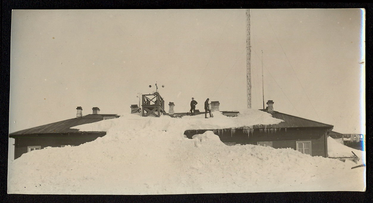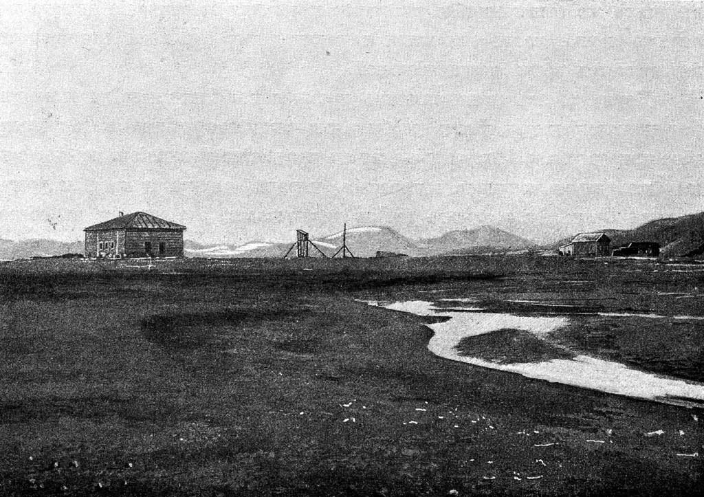 1) Выстроен жилой дом в 15 комнат для личного состава сотрудников; 2) выстроен дом для радио-станции; 3) построены две радио-мачты по высоты; 4) выстроена баня и две кладовые для провизии; 5) выстроен павильон для магнитной обсерватории, где установлены самопишущие приборы для записи всех трех элементов земного магнетизма; 6) устроена метеорологическая станция, и 7) построен легкий павильон для абсолютных магнитных наблюдений. Дома все деревянные, бревенчатые, хорошо конопачены и для лучшего отепления обшиты снаружи толем и сверх него досками.