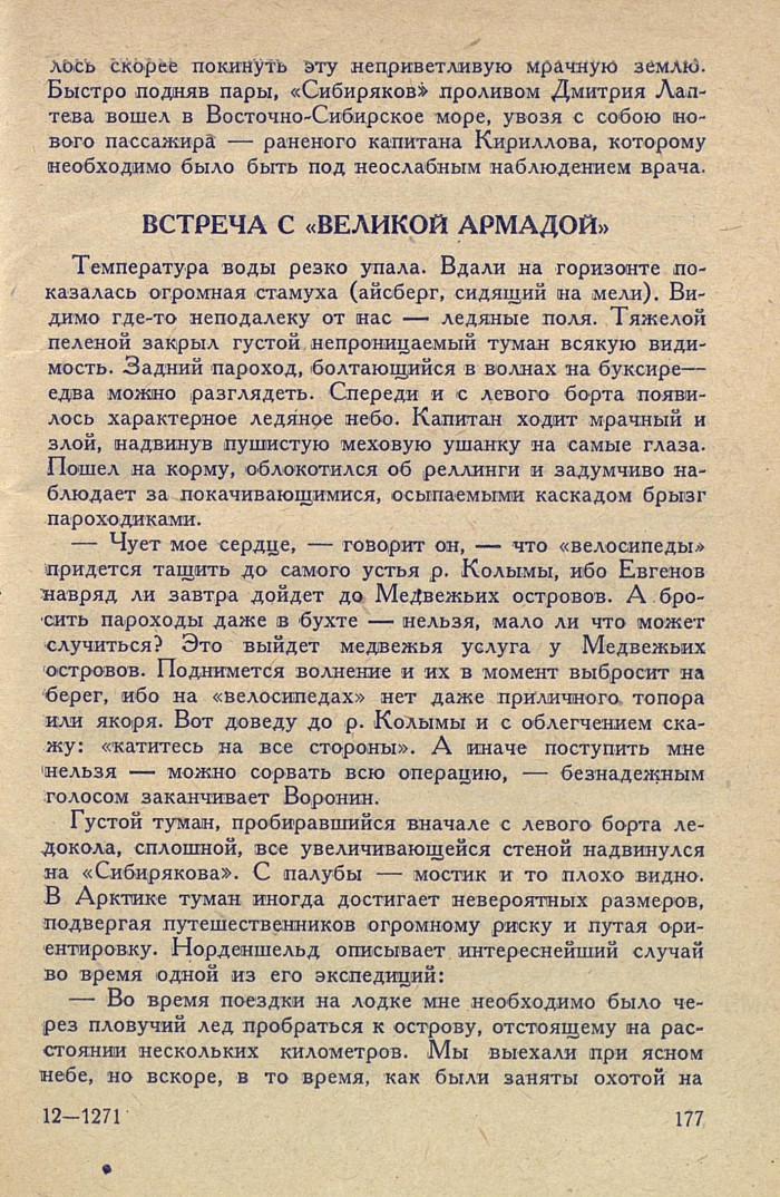 лось скорее покинуть эту неприветливую мрачную землю. Быстро подняв пары, «Сибиряков» проливом Дмитрия Лаптева вошел в Восточно-Сибирское море, увозя с собою нового пассажира — раненого капитана Кириллова, которому необходимо было быть под неослабным наблюдением врача.
