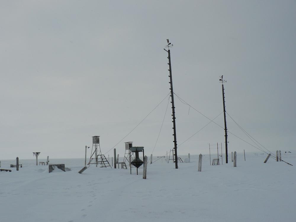 Метеоплощадка расположена к югу от жилых домов в 60 метрах от них, на север от площадки в 120 м. находиться берег моря. Площадка расположена на ровном месте, почва болотистая тундра. Препятствие составляют только строения полярной станции, других препятствий нет.