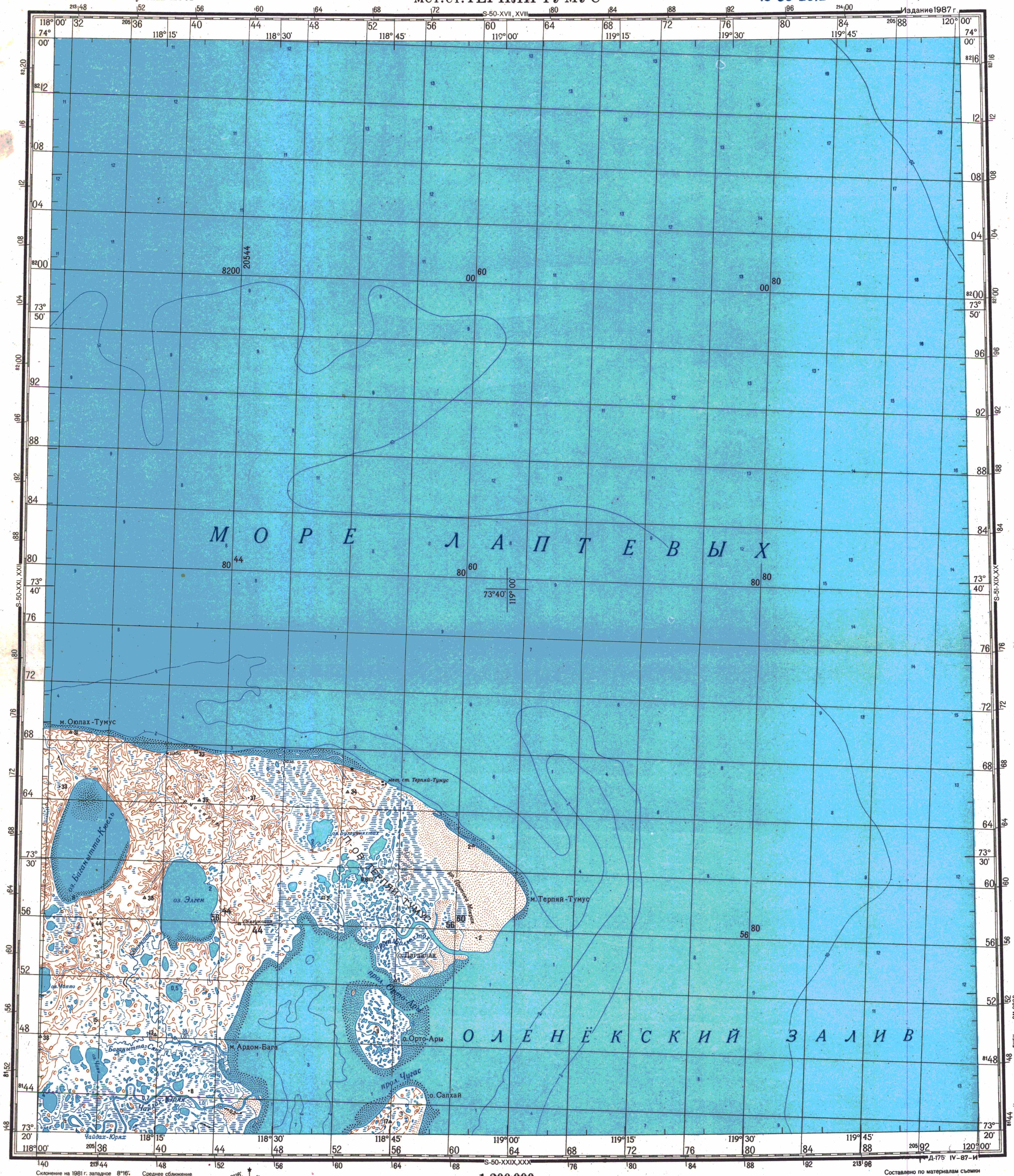 Координаты пункта: широта: 73 o 33 ' (73.55) ; долгота: 118o 40 ' (118.67) ;