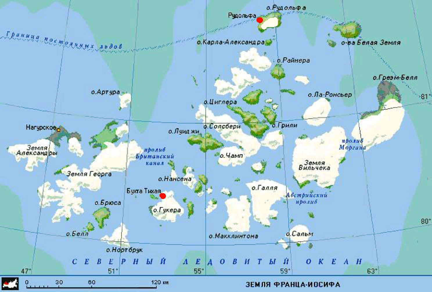 Остров Рудольфа является самым северным островом Земли Франца-Иосифа и самым северным островом Советской Арктики. Он был открыт в 1874 г. австрийской экспедицией к Северному полюсу на корабле «Тегетгоф». В те времена среди многих географов еще господствовало мнение, высказанное известным немецким географом Петерманом, что у Северного полюса чистая вода и потому Северный полюс легко достичь на обыкновенном корабле.
