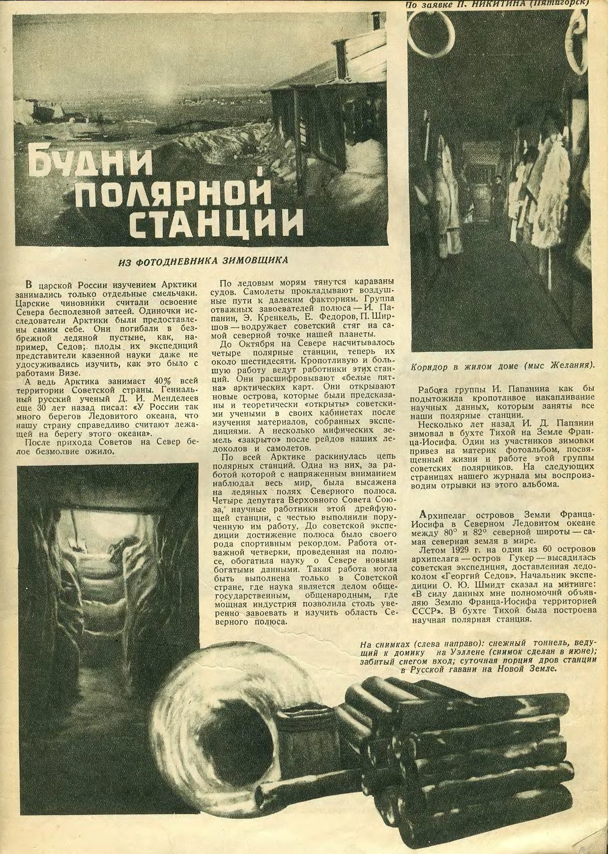Во второй половине ночи частыми стали очень бурные северные сияния. Весь декабрь и начало января прием и передача радиограмм то и дело прерывались оглушительным треском. 6 января слышимость вдруг совсем пропала. Днем и ночью дежурили в радиорубке, но все тщетно. На станции уже собралась гора неотправленных метеосводок. И вот тут произошло событие, которое надолго взволновало зимовщиков.