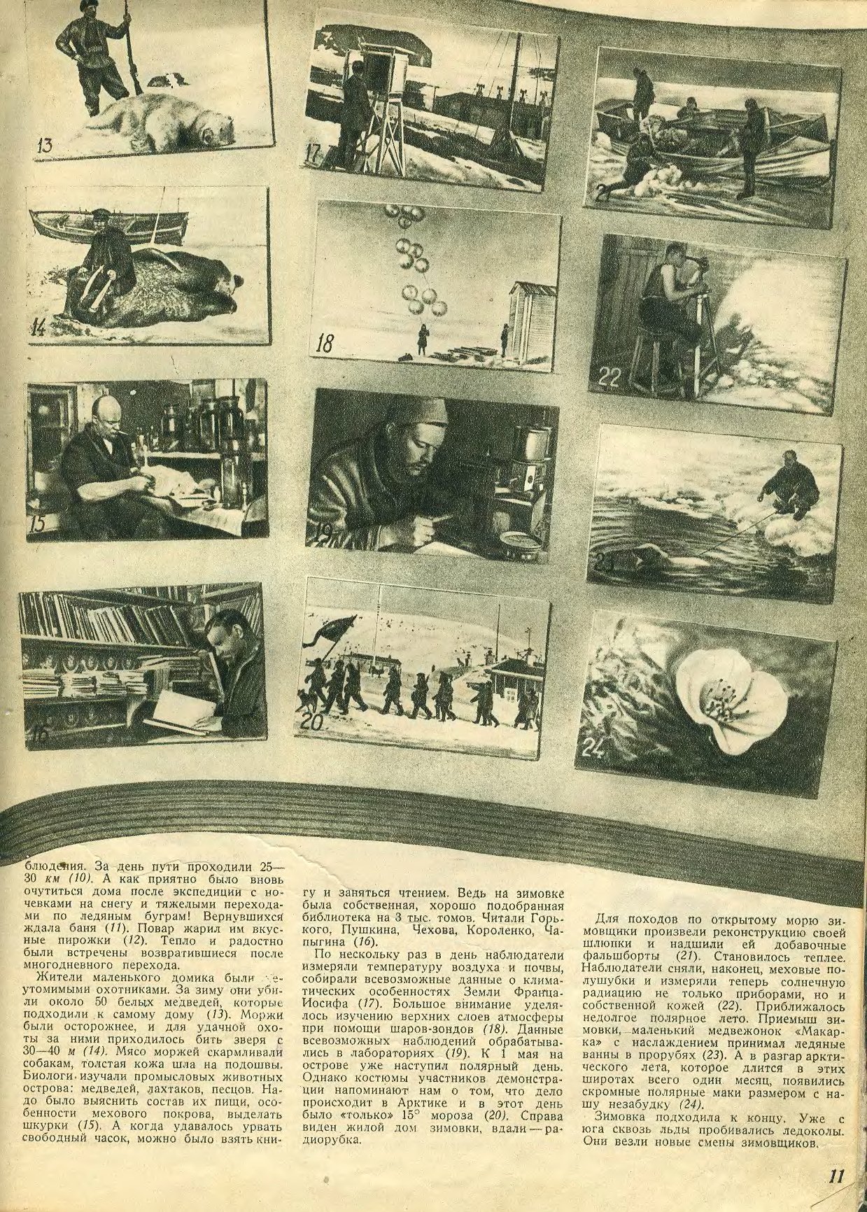 Говорил радист антарктической экспедиции Бэрда, находящейся на противоположной стороне земного шара у Южного полюса, координаты 78°35'30"ю. ш. и 163°35'з. д. Сначала разговор сводился к обмену любезностями и приветствиями, затем поделились новостями. Американец сообщил, что у них конец лета, температура —2°. Бэрд хотел лететь к полюсу, но большая облачность мешает подняться самолету. Судно экспедиции «Сити оф Нью-Йорк» прошло Новую Зеландию и приближается к кромке льда. Оно везет смену. Главная база экспедиции на барьере Росса — «Город холостяков». В нем живет 42 мужчины и ни одной женщины. Есть три самолета и много ездовых собак. На днях из глубины Антарктики вернулась сухопутная партия, сделав на собаках 4000 км. Полгода назад прошла полоса 60-градусных морозов. Его передатчик в 800 ватт, а наш 250 он слышал оглушительно. Кренкель в свою очередь сообщил, что у нас зима, полярная ночь длится четыре месяца, температура — 36°. На станции всего семь человек мужчин и тоже ни одной женщины. Живем крепкой, дружной семьей, только надоедают белые медведи.