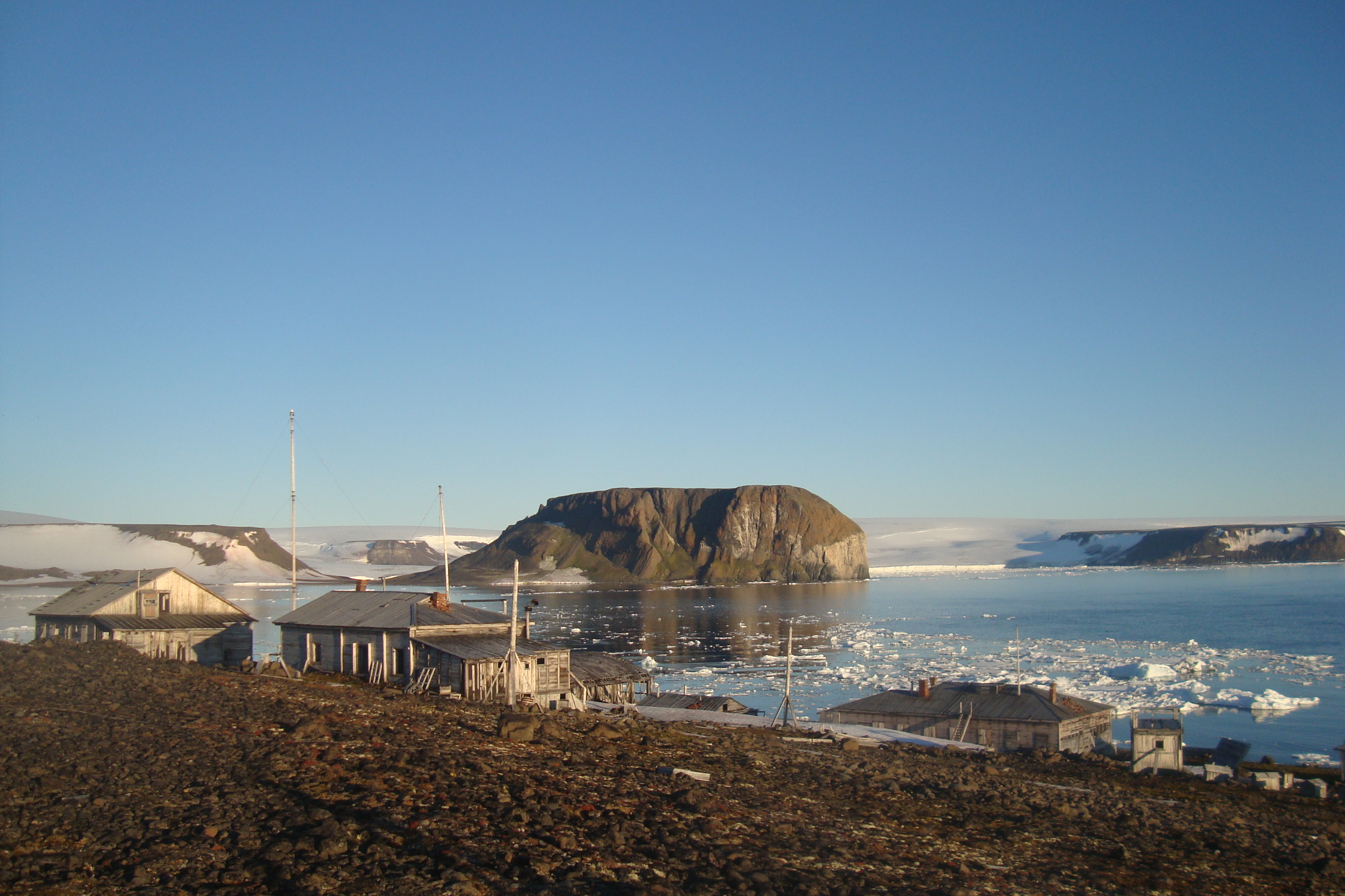 После мыса Флора пошли в бухту Тихую. После недолгого обсуждения было решено основать в этой бухте полярную станцию. Сразу же началось строительство станции.